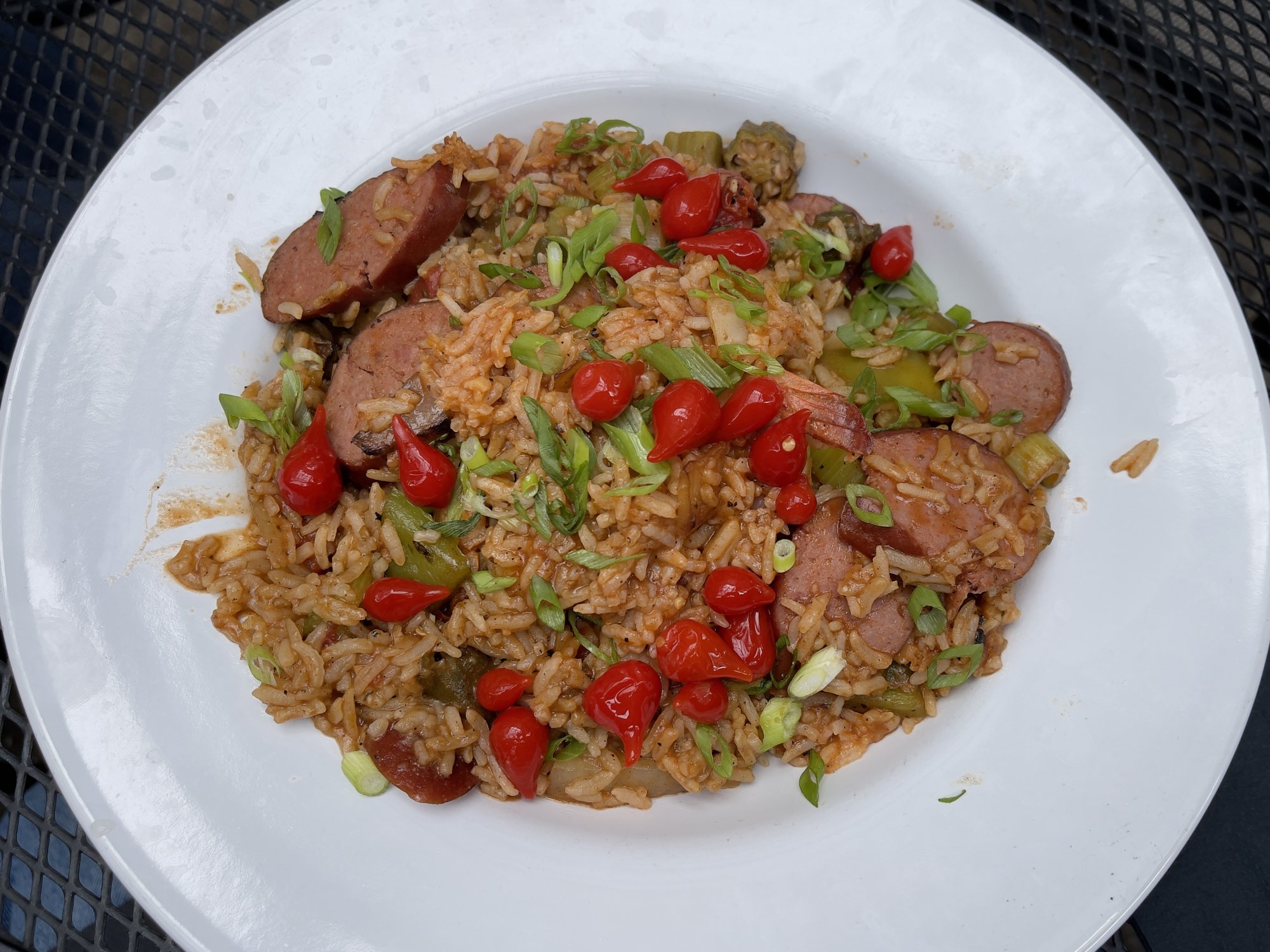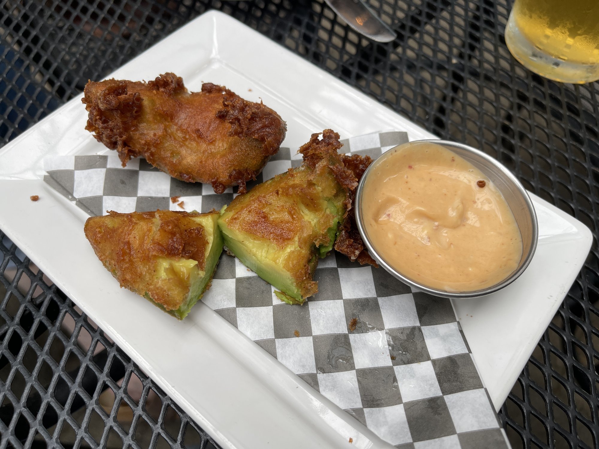 yum, yum, yum.Fried avocado slices and jambalaya 😎