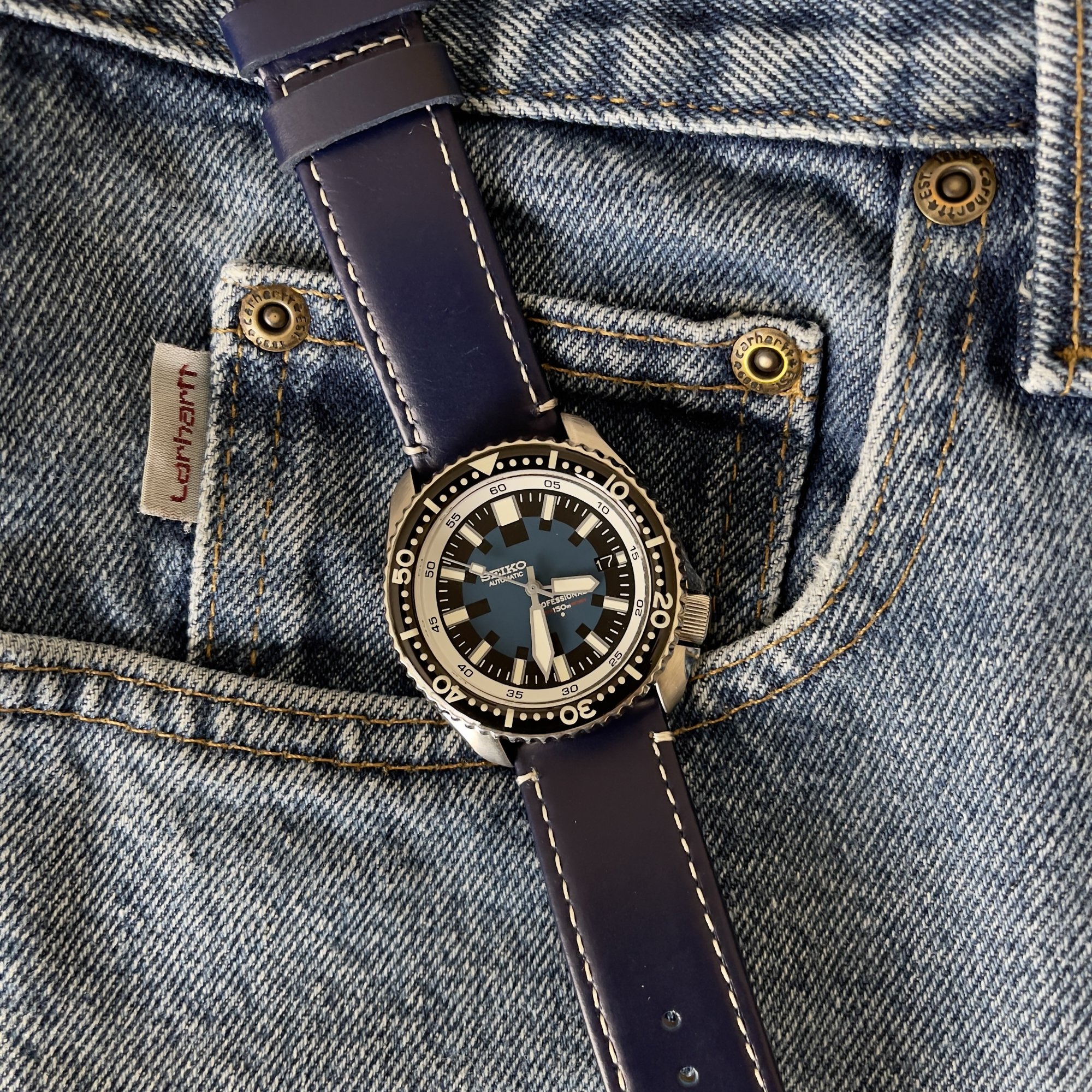 This is a 1990 model 7002-700J. It has the original movement and case (very nice condition) with modded bezel, dial, ring and hands. I added the blue Barton leather band with white stitching. I'd consider selling it (it's been recommended that I thin my herd of watches), so DM me if interested.What model is that? I’ve been browsing the Seiko fan fb group and there are tons of good ones ppl have! I’m still rocking my SKX007J