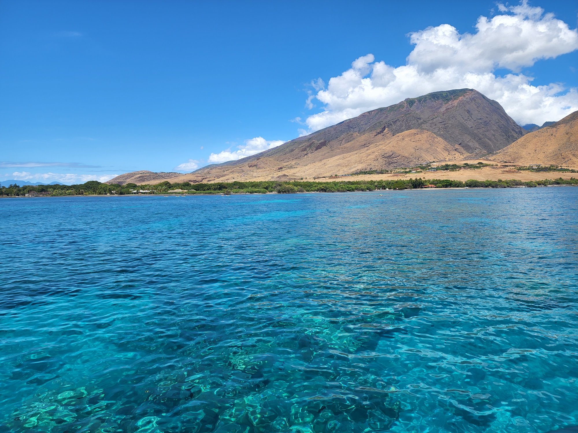 The first pic is just off of Maui just outside of Lahaina. The island in the far distance I believe is Lanai island.Beautiful water. Is that an island in the distance or the mainland from across a cove or inlet?
