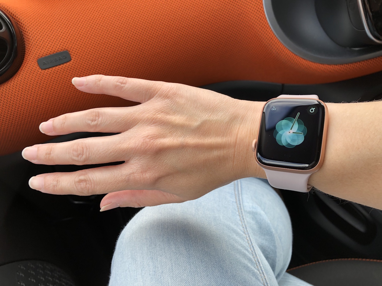 44mm gold aluminium with a knock-off lavender sport band. Before anyone asks, yes my car has an orange dash.