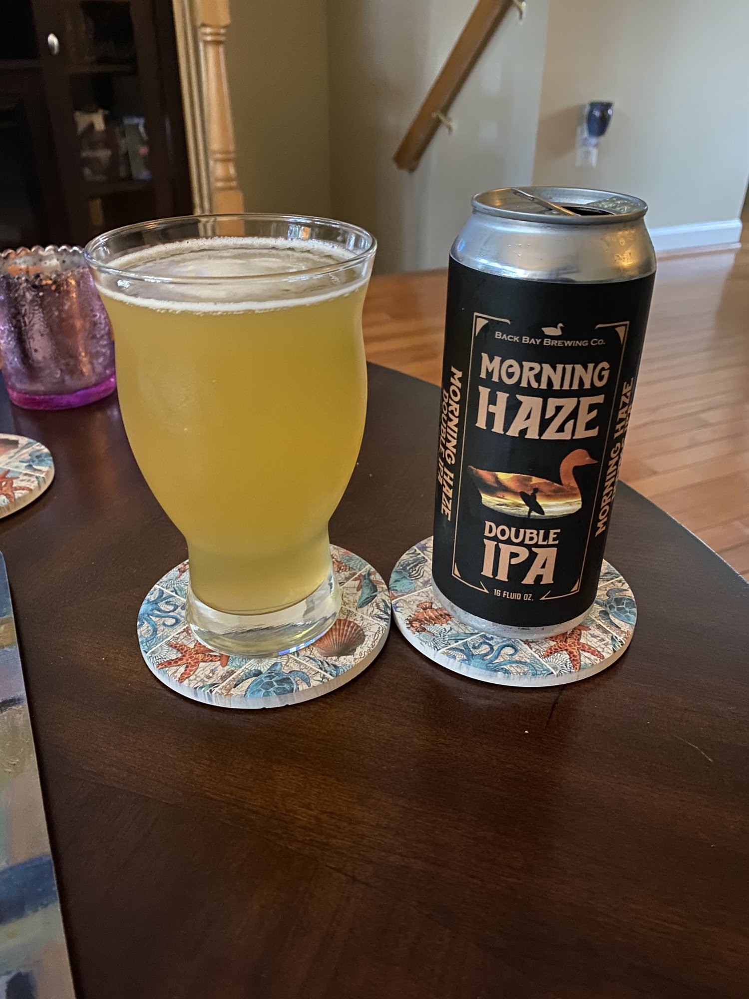 I asked because it was VERY CLEVER to stage a photo of beer that uses a dog as part of the can design, with a painting/print of a dog in the background.