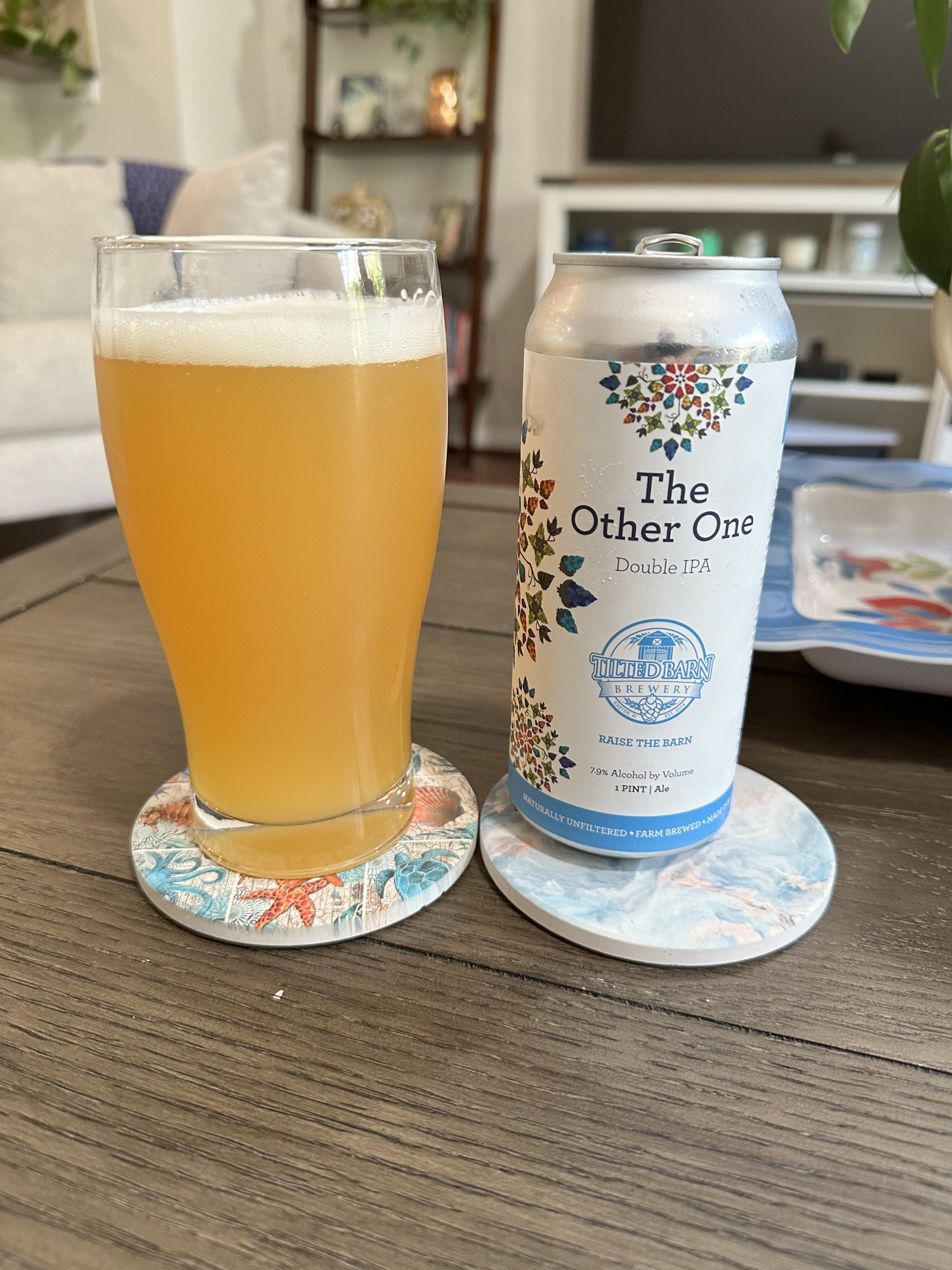 Sounds a lovely summer beer.The Other One, by Tilted Barn Brewery. They describe this one as having strong notes of dank mango, citrus rinds, and tropical fruit. I tell you, they hit all those on the nose and the beer tastes fantastic as well
