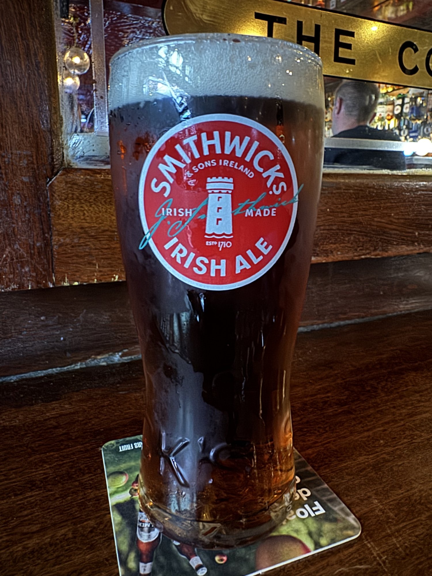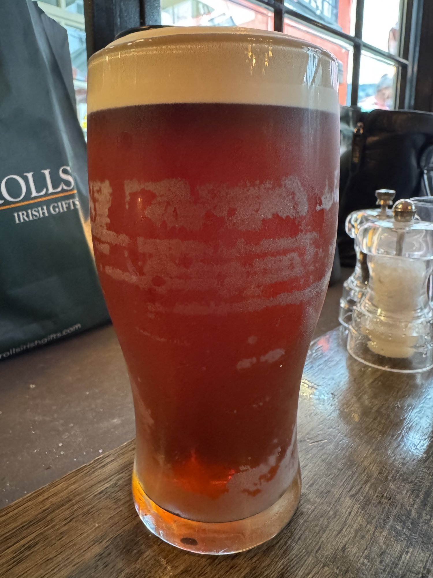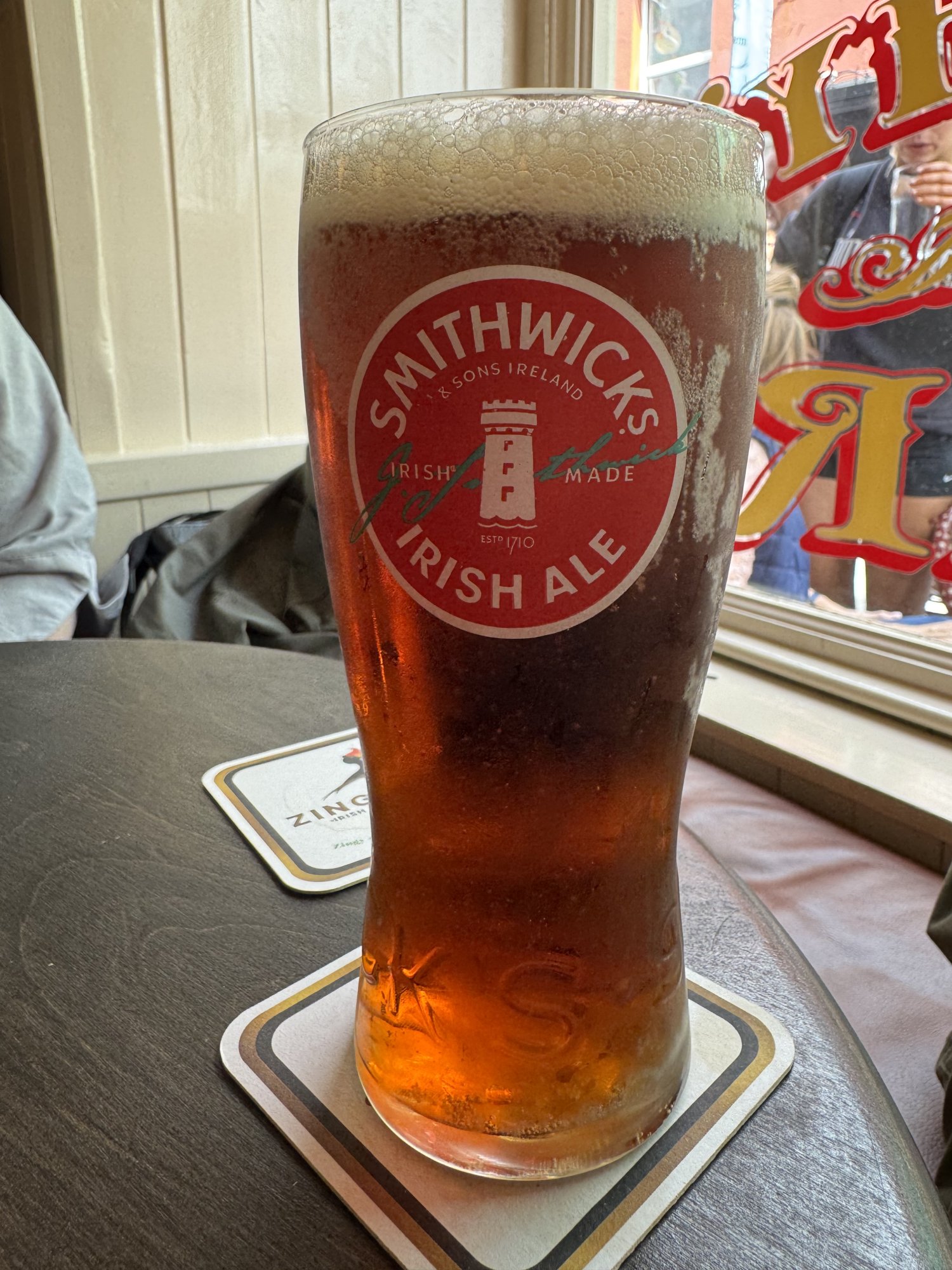 Ok, so we stayed at the tourist trap for one more drink... 😛Try Kilkenny if you can find it; it is a sort of cross, I quite like it, between Smithwick's with a dash of Guinness.