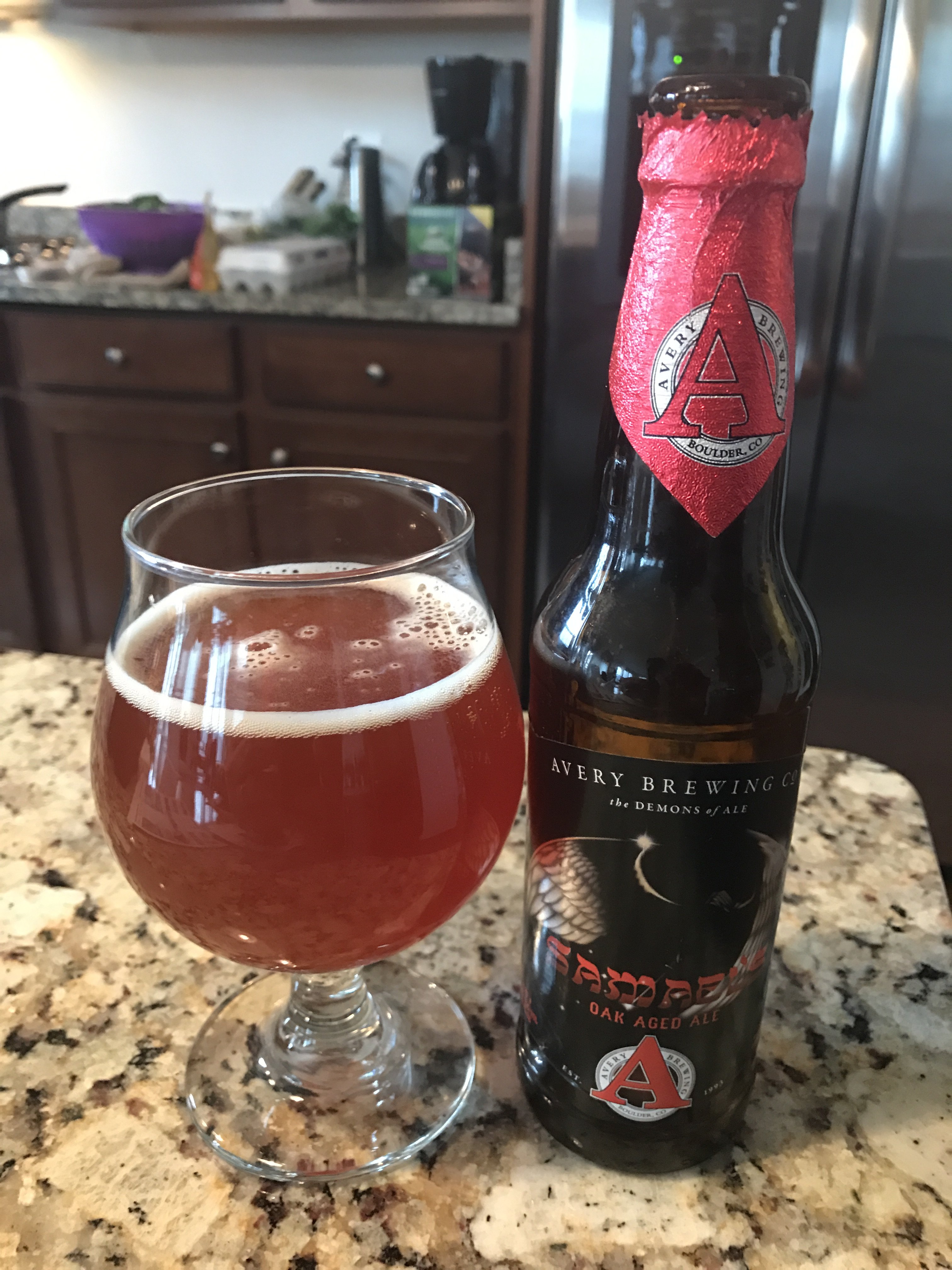 I am a big fan of Avery Brewing; wish I would have held on to this bottle for a little while longer. Samael's Oak Aged Ale; 16.3% ABV with a very sweet finish