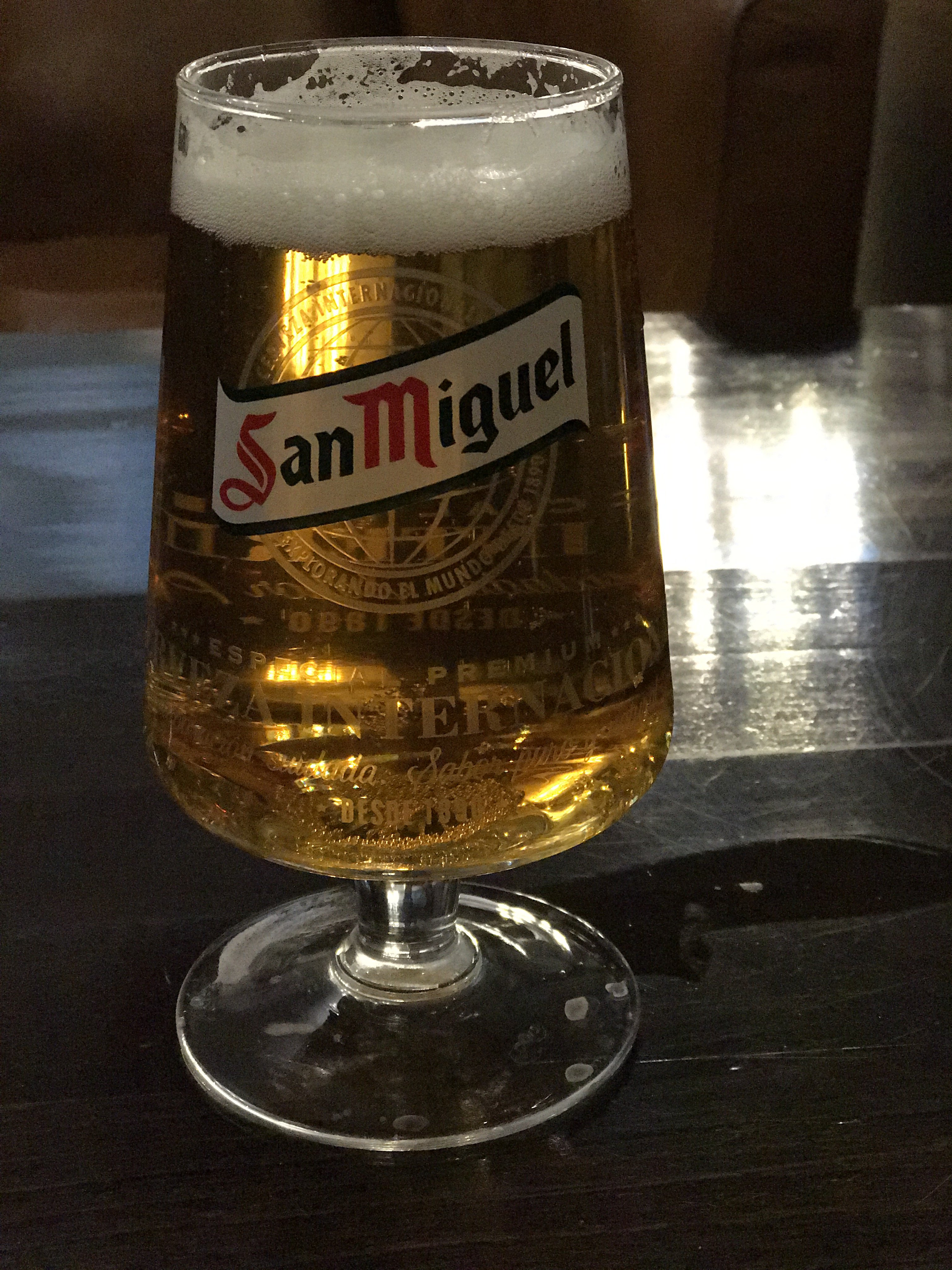 Is that a San Miguel or a Stella in a San Miguel glass? Nice picture.