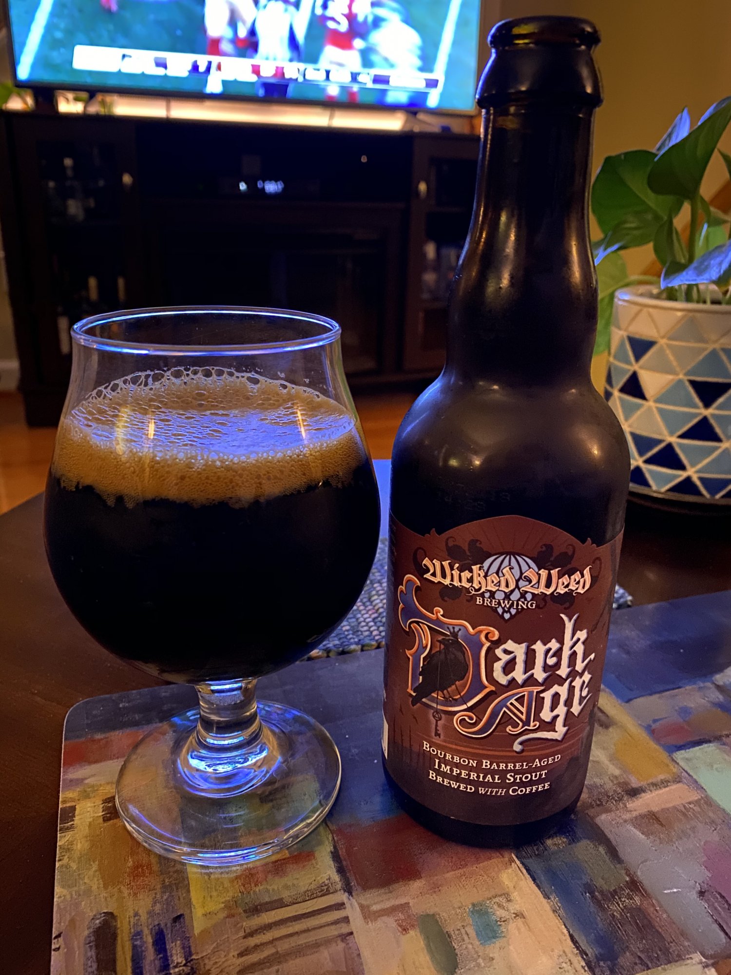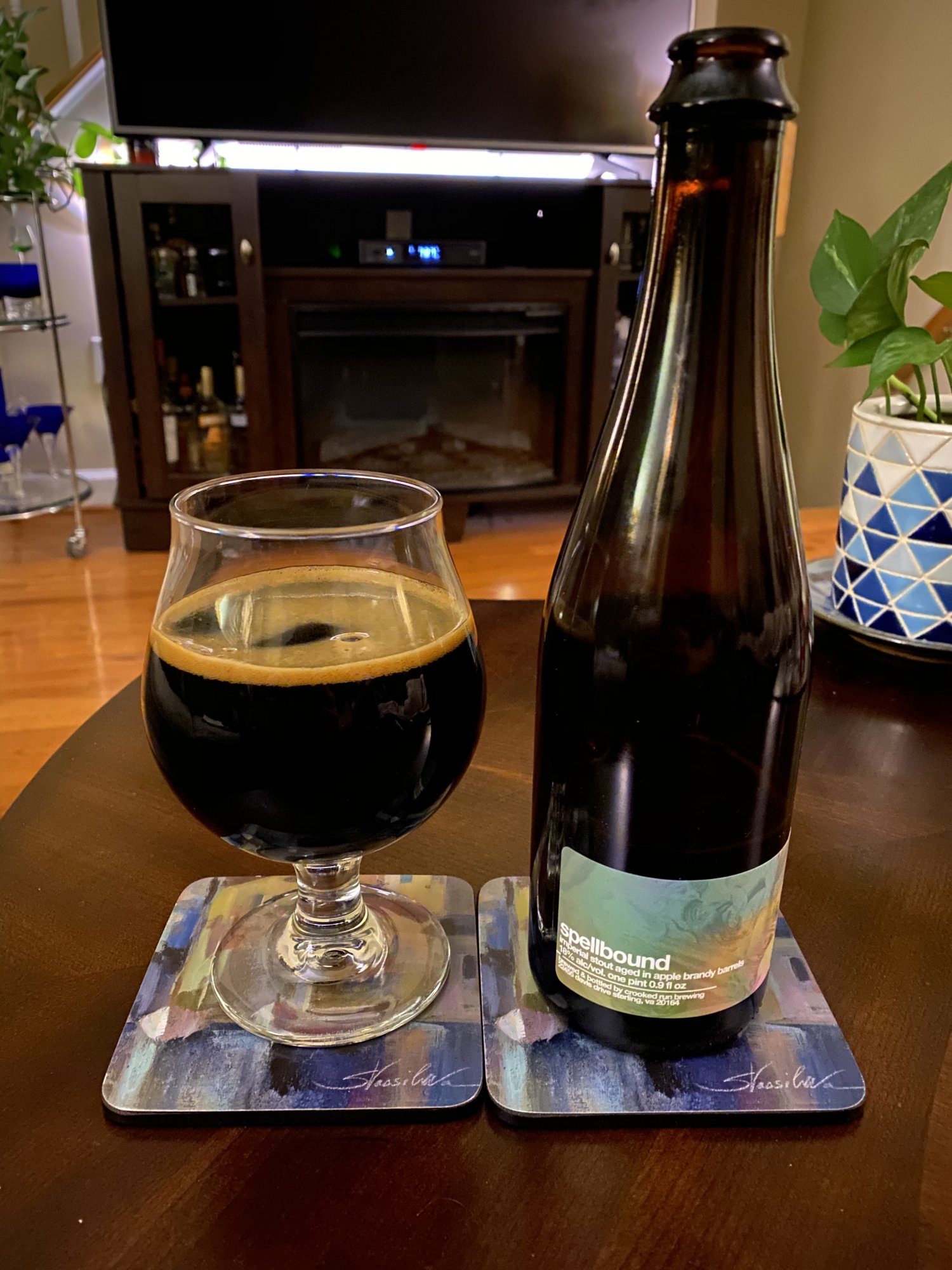 Spellbound, imperial stout aged in apple brandy barrels. 18% ABV of damn goodness