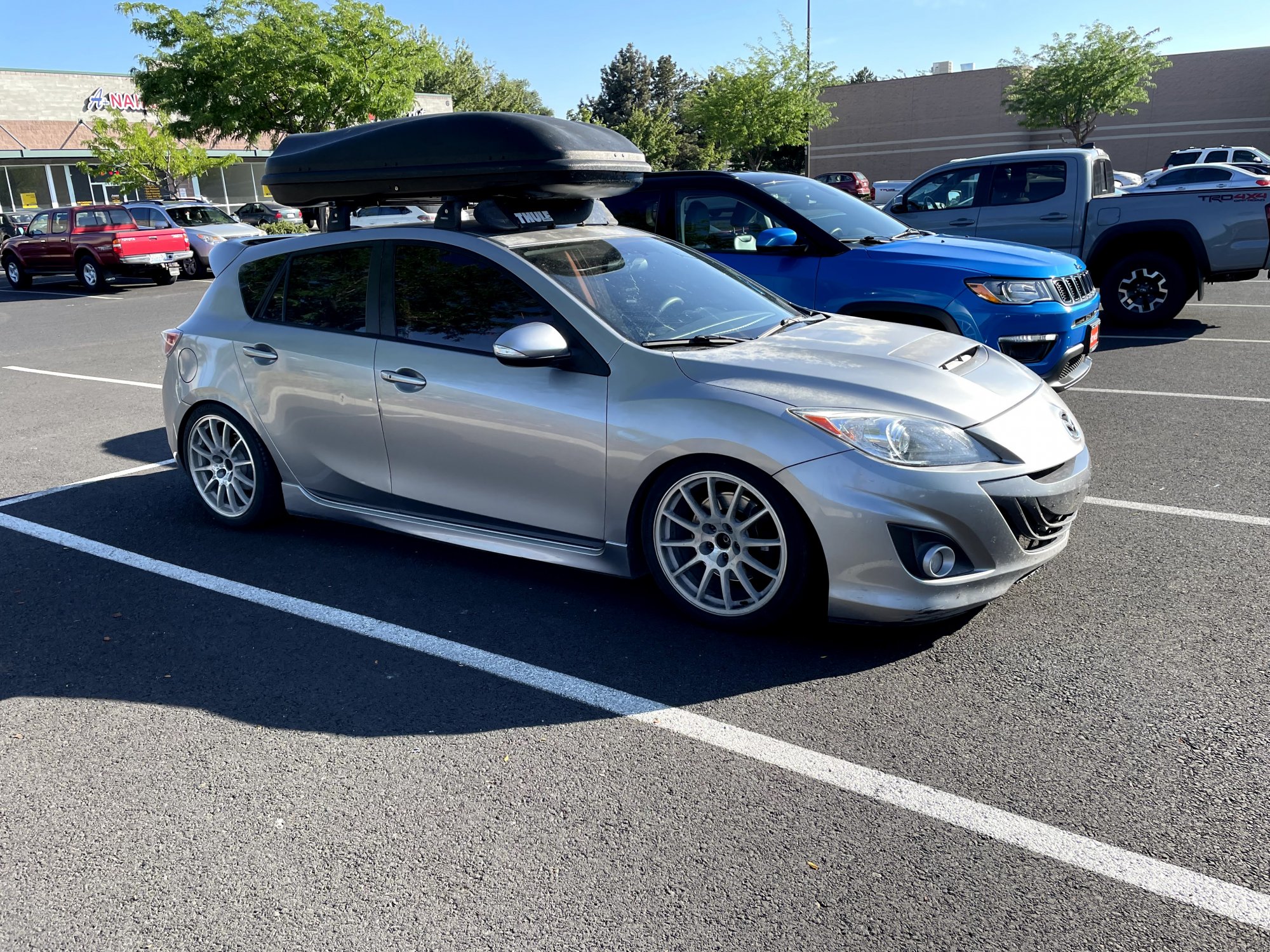 Speed! I had a first gen. Miss that car. I picked up an evo9 afterI missed my old Mazdaspeed 3, so I got another one. 2012 tech package. This one isn't as clean as my old one, but it's better in almost every other way. 110K on the motor. BNR S1, Cobb DP and full exhaust, Damond motor mounts, BC coilovers, Evo X wheels. I'm going to get the roof wrapped and see about getting the hood and the wing resprayed. It's nice to be back in a Mazdaspeed.