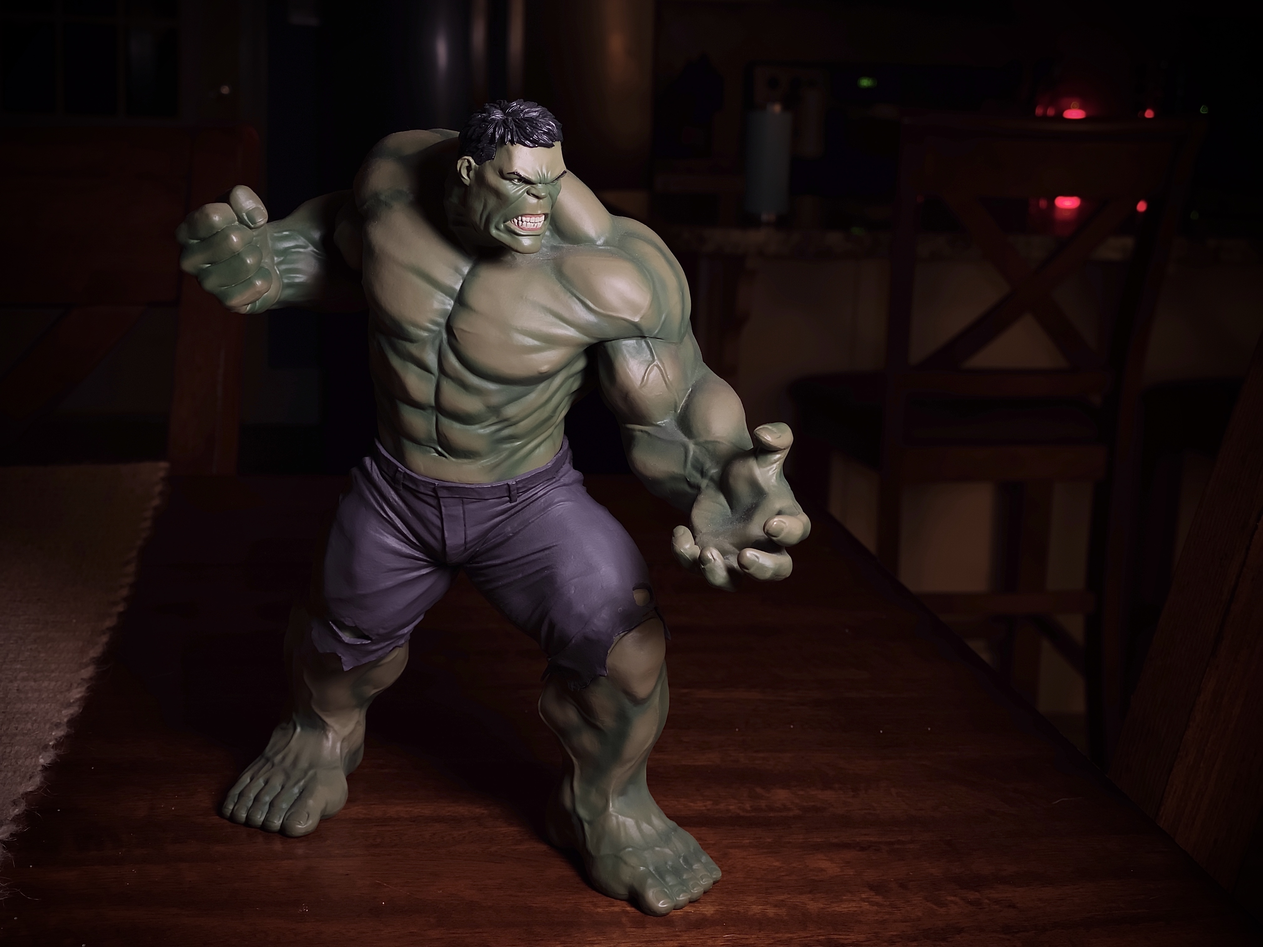 Very nicely doneiPhone 11 Pro Max and the Hulk. Used the NightCap app, manually set the iso and exposure. A LED video light was used to light the Hulk. Set app to use the 2X camera. Exposure time was 10 seconds on the app. The exposure time on the app doesn’t ever overexpose, it just keeps on stacking images. Clear and sharp.