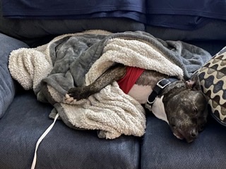 Every pitty I know loves being snuggled up under a blanket! He looks blissful.Not the best pic. But the subject is the best. Yes, he manages to get the blanket wrapped around him. He loves his electric blanket.View attachment 878982