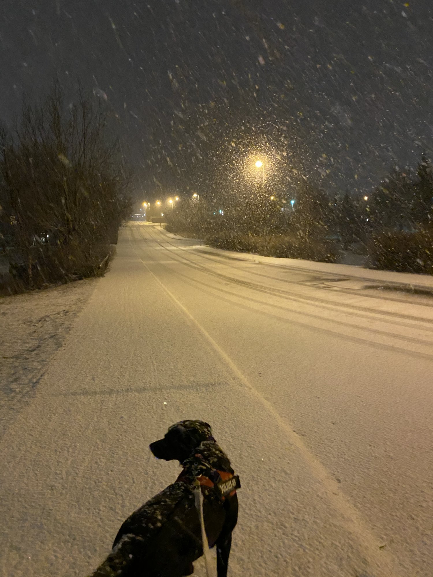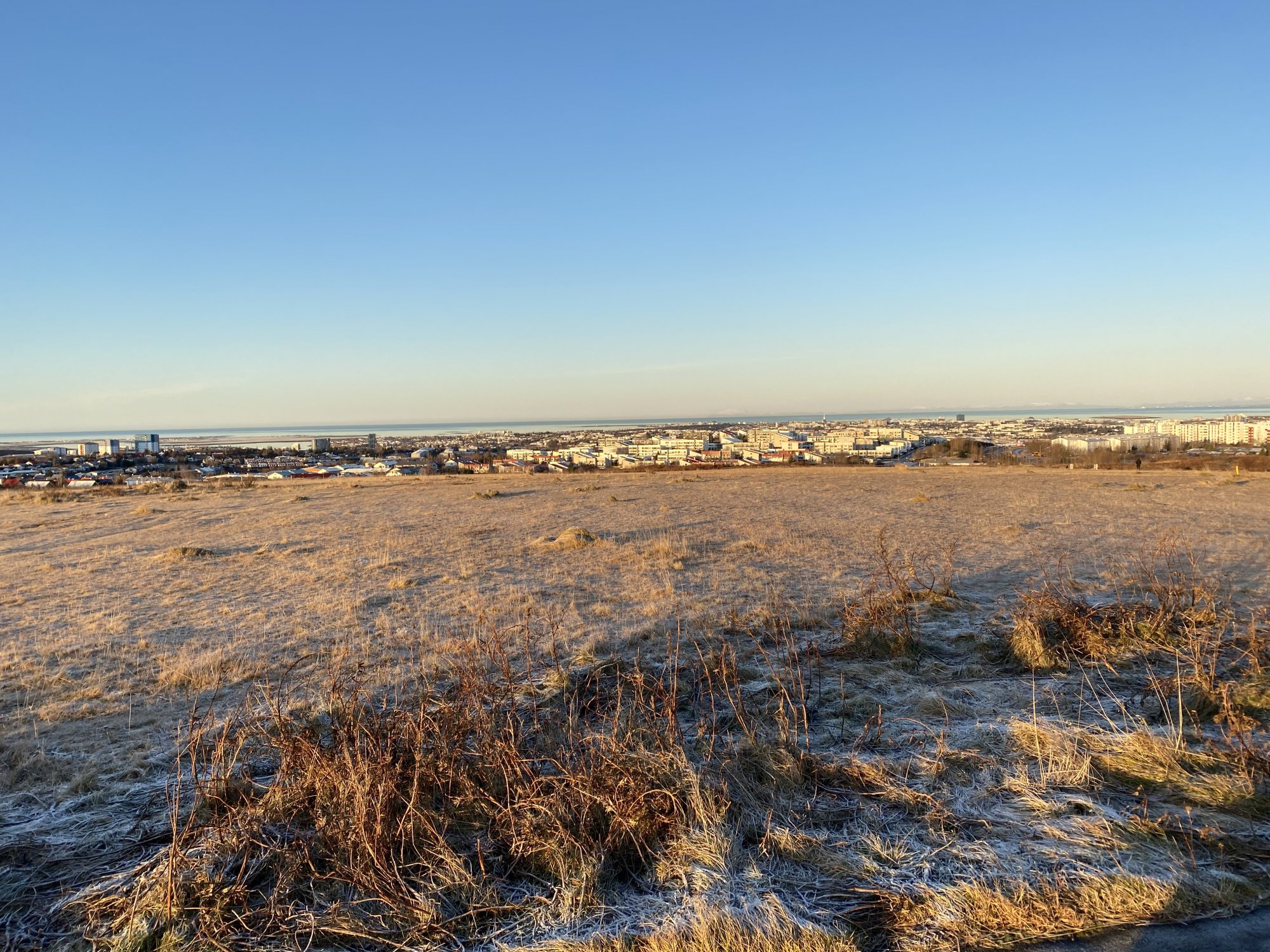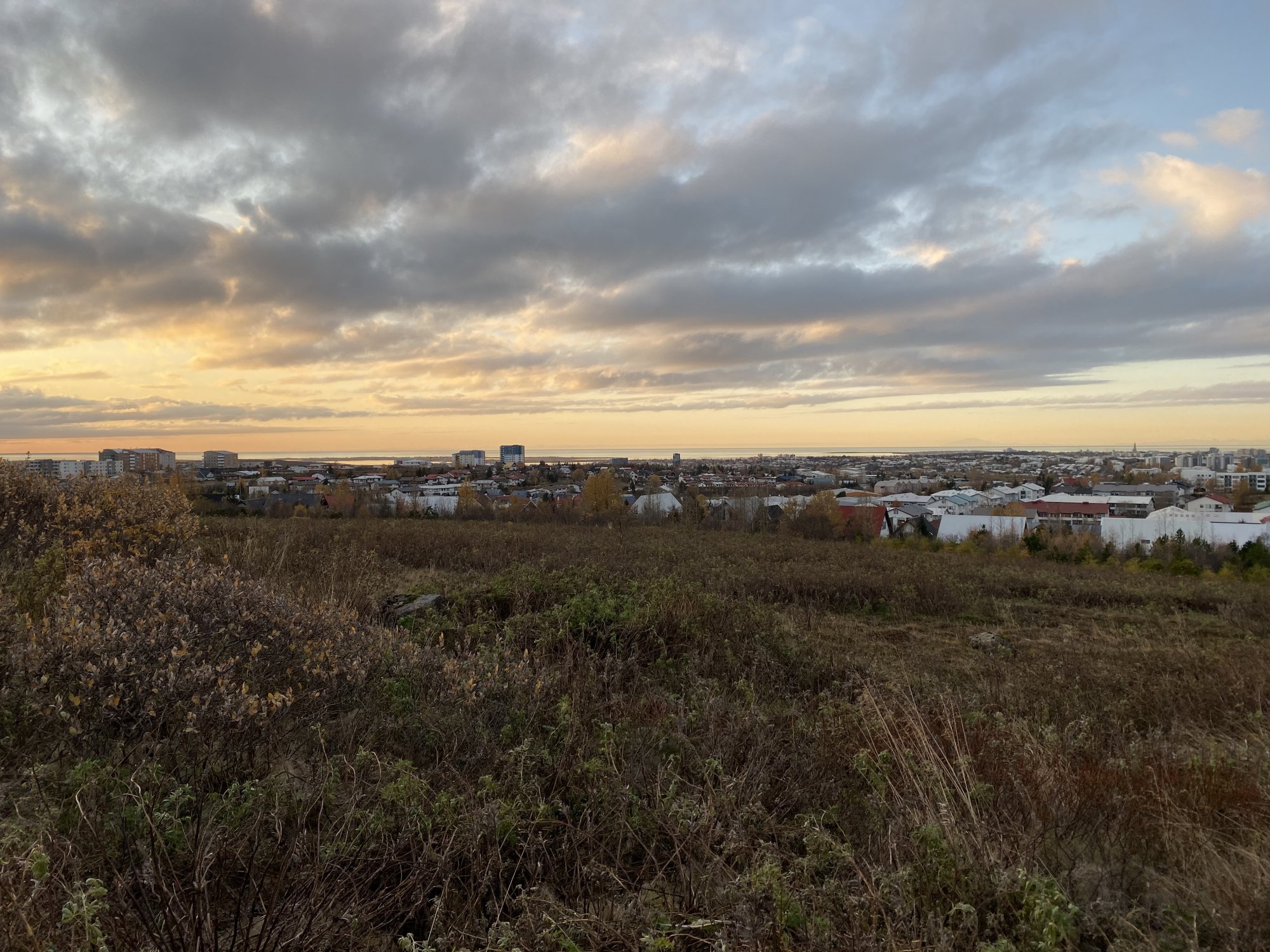 Photos overlooking Reykjavík and two others during and after snowstorm.