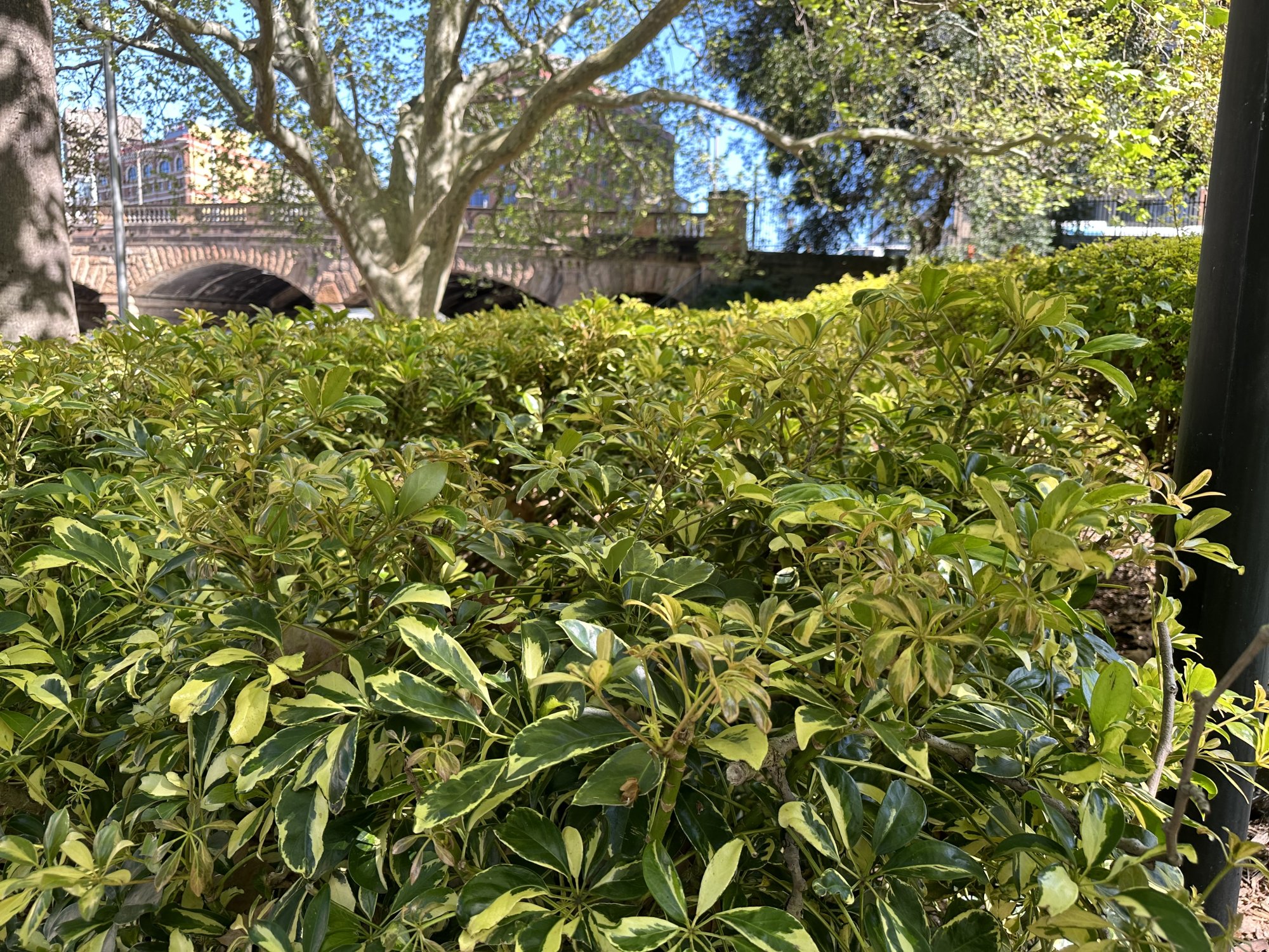 Here's a telephoto shot of the same scene. The telephoto hardware didn't get upgraded this year as far as I know so this is a real test of Photonic Engine. To my eye the water droplet detail has improved significantly with a lot less oil painting effect than before. You can make out more individual droplets than what 13 Pro would capture and the result is a more satisfying fountain texture. There's a little more texture in the stone at the bottom of the frame too. This must be a result of using the raw uncompressed camera data to kick off the computational photography process because this kind of micro detail/contrast in the droplets is what I'm more used to seeing in Halide RAW photos (not entirely but you get the point).