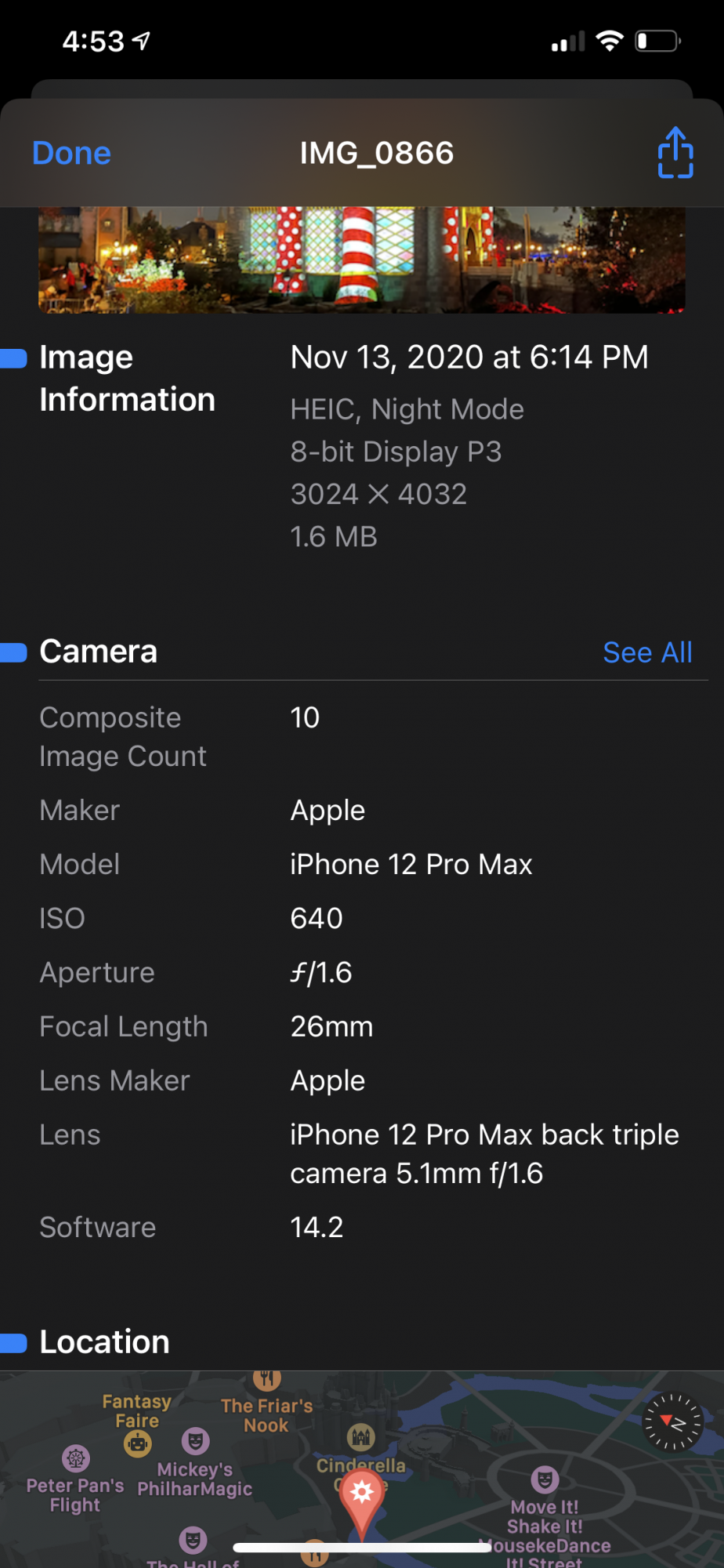 Worth noting that was a JPG, so I would’ve had a lot more to work with if the RAW format would’ve been available in the native camera app at that time. I‘ve since updated to 14.3 and I’m very pleased with what I’m able to do with the RAW files. — I also took a DNG picture with the LightRoom app but it was garbage. Very noisy and unusable.