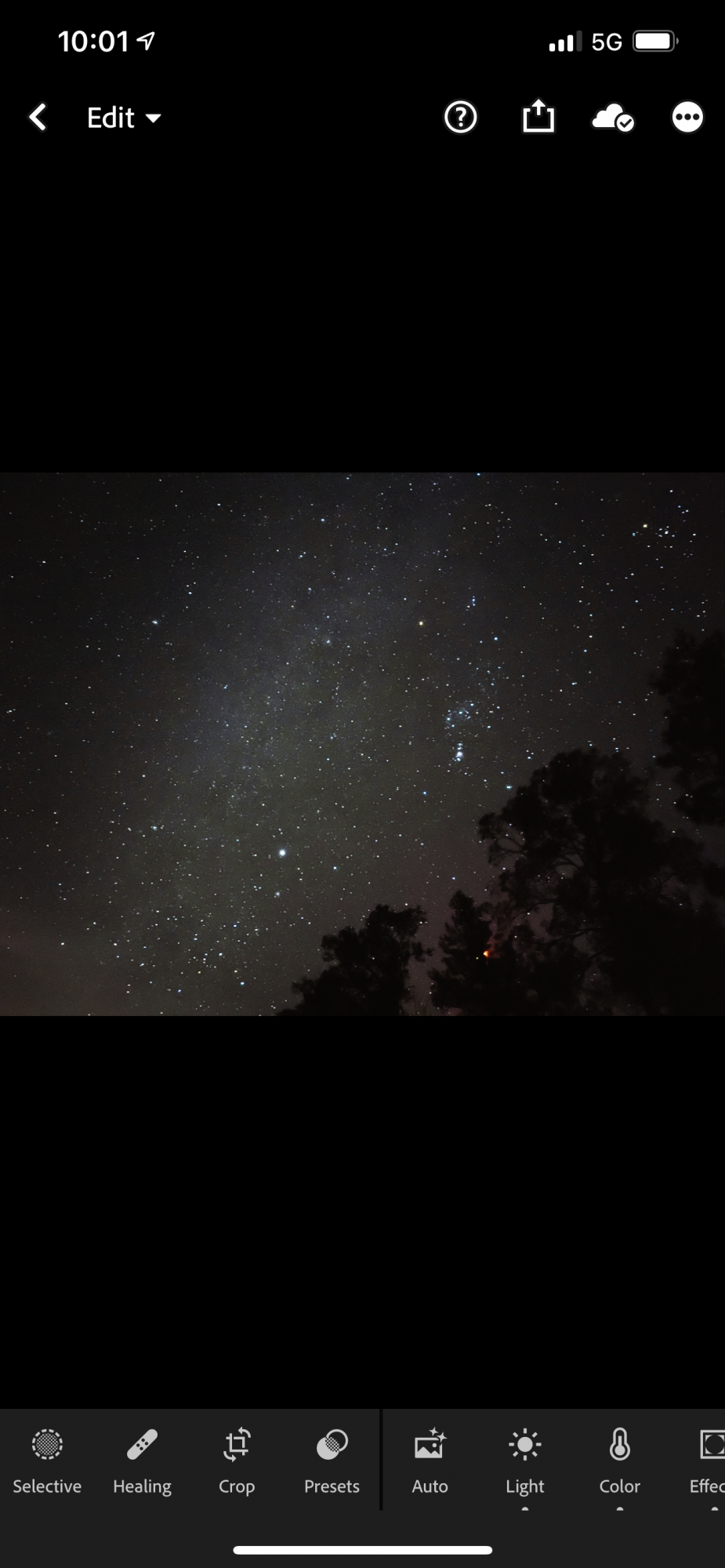 Good morning…the Milky Way photo was shot on Apple ProRAW using night mode. I was in a dark location and I used my mini tripod and iPhone bracket for the 30” exposure. The RAW photo looked dark, I had to adjust the exposure in Lightroom mobile to bring out the winter Milky Way. I added two screen shots from Lightroom showing the before and after. 30” really isn’t a long time to expose, I hope the iPhone 13 gives us up to 2 minutes at least. But this was just a regular night mode shot for 30” in ProRAW mode.
