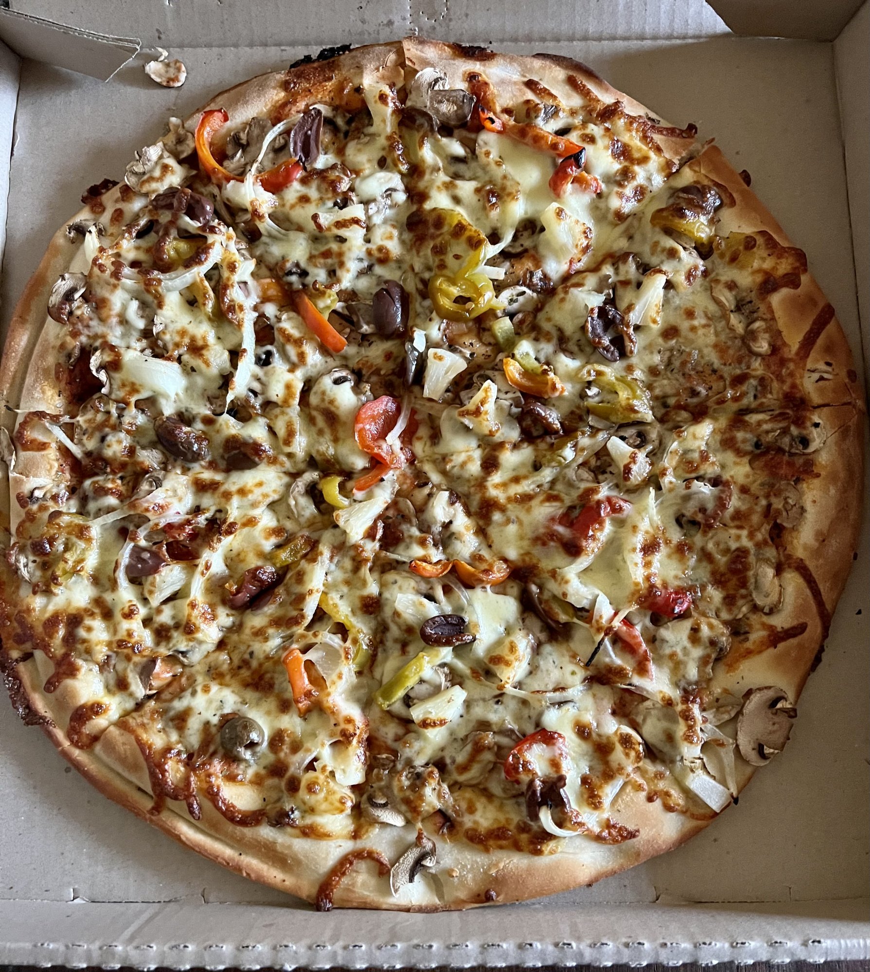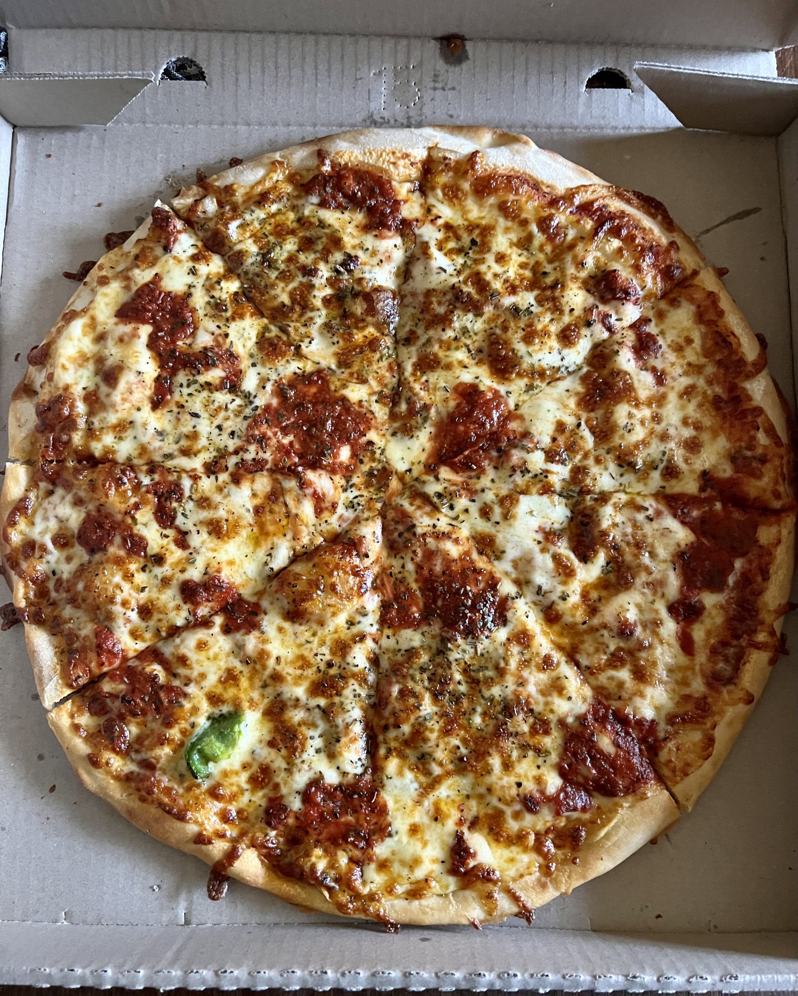 Ahh, but it’s not just a Margherita pizza, it’s the margherita pizza with a tiny jalapeno pepper slice on the bottom. Curiouser and curiouser!Margherita pizza.