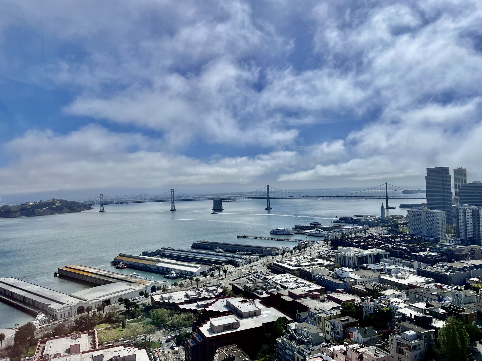 😶🌫️ View of the (SFO) San Francisco-Oakland (OAK) Bay Bridge. One of the longest spans in the United States of America ☁️![]()