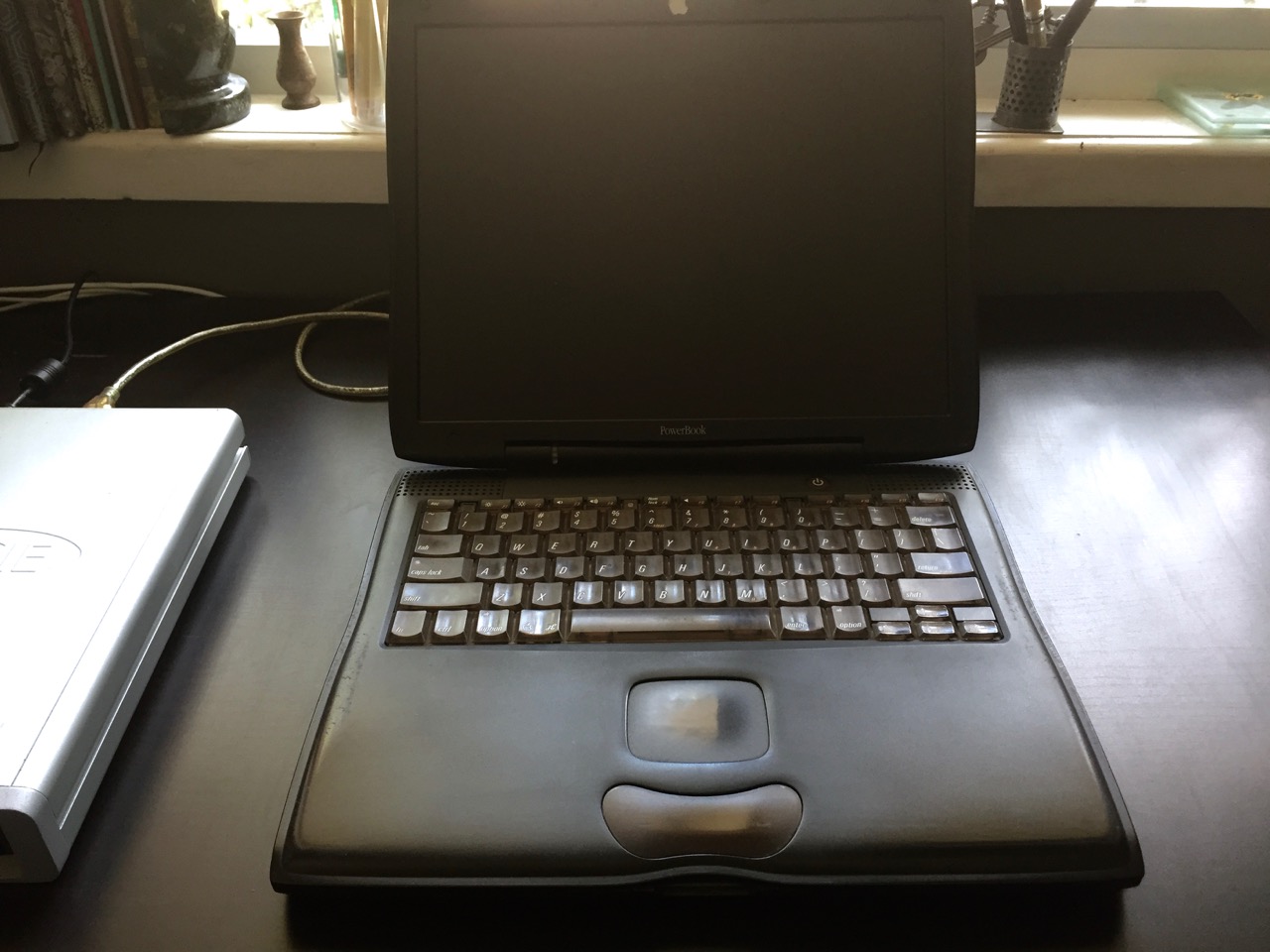 The battery doesn't charge and the internal DVD drive is a bit flaky, but otherwise, it is a gorgeous PowerBook and one that I have always wanted since first meeting in 2001. This black, curvaceous beauty arrived with only 128MB of RAM (2x64) and surprisingly booted into Tiger off the bat. I wouldn't recommend anyone run Tiger with less than 256MB though, it gets clunky.