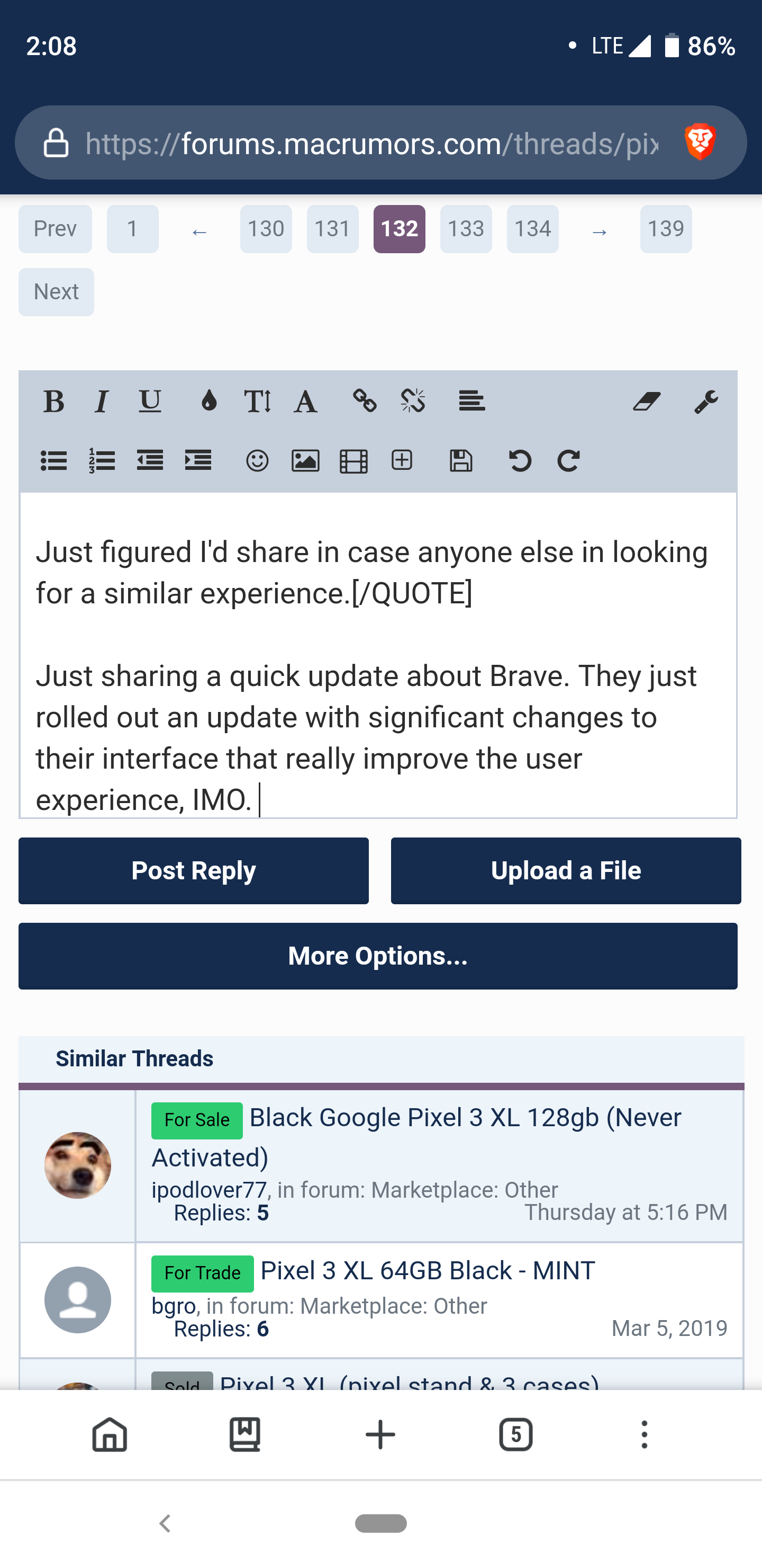 Just sharing a quick update about Brave. They just rolled out an update with significant changes to their interface that really improve the user experience, IMO. They've adopted a bottom placed nav bar, a la Safari or the Samsung browser that makes one handed use so much better. Now easily my favorite Android web browser.