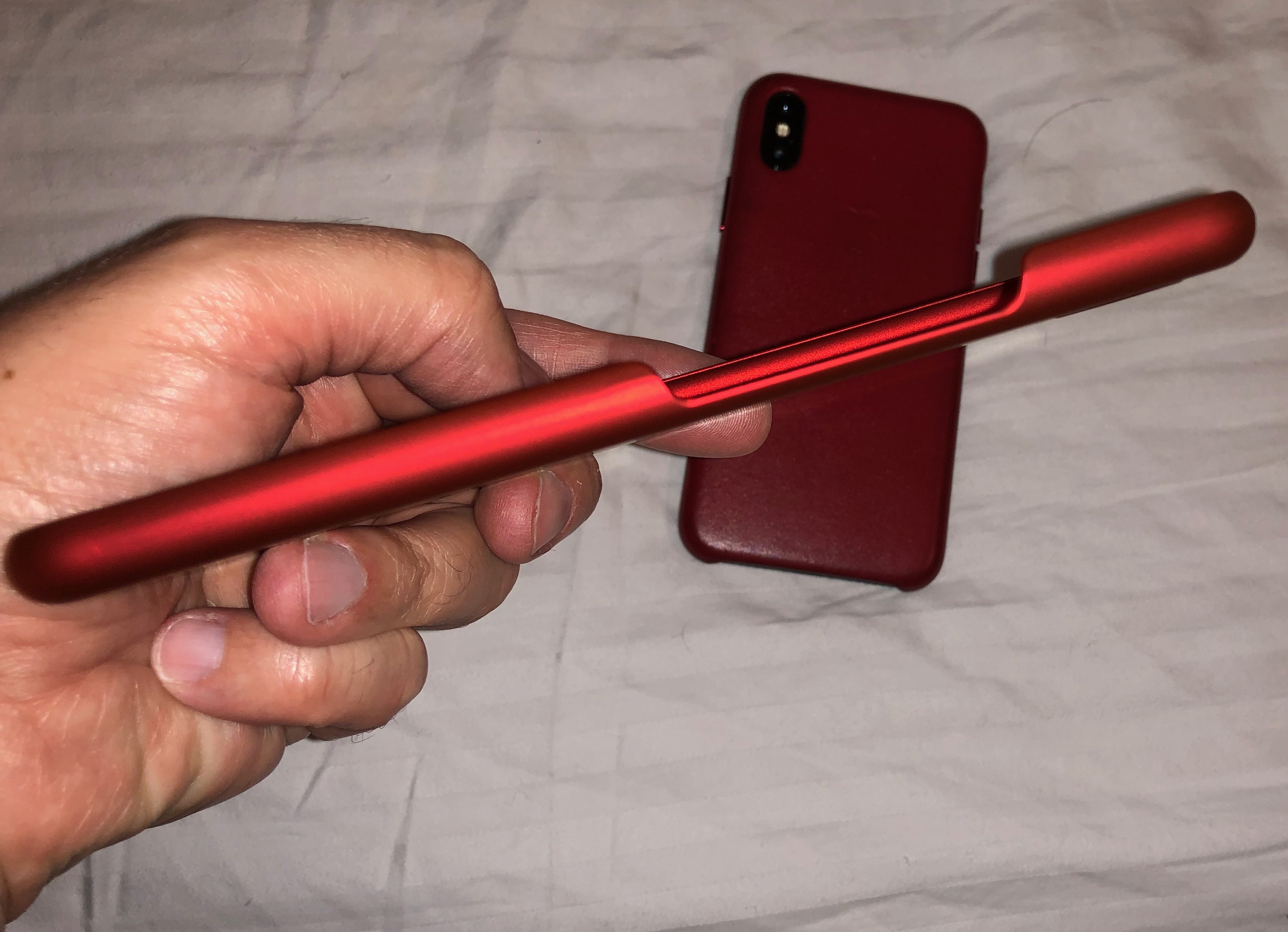 Here it is. The satin red version of that case and comparing it to my iPhone X in size. The case has a nice feel to it, though a bit slippery because of that satin feel. Still, it's very thin, just like I wanted.View attachment 795089 View attachment 795090 View attachment 795091