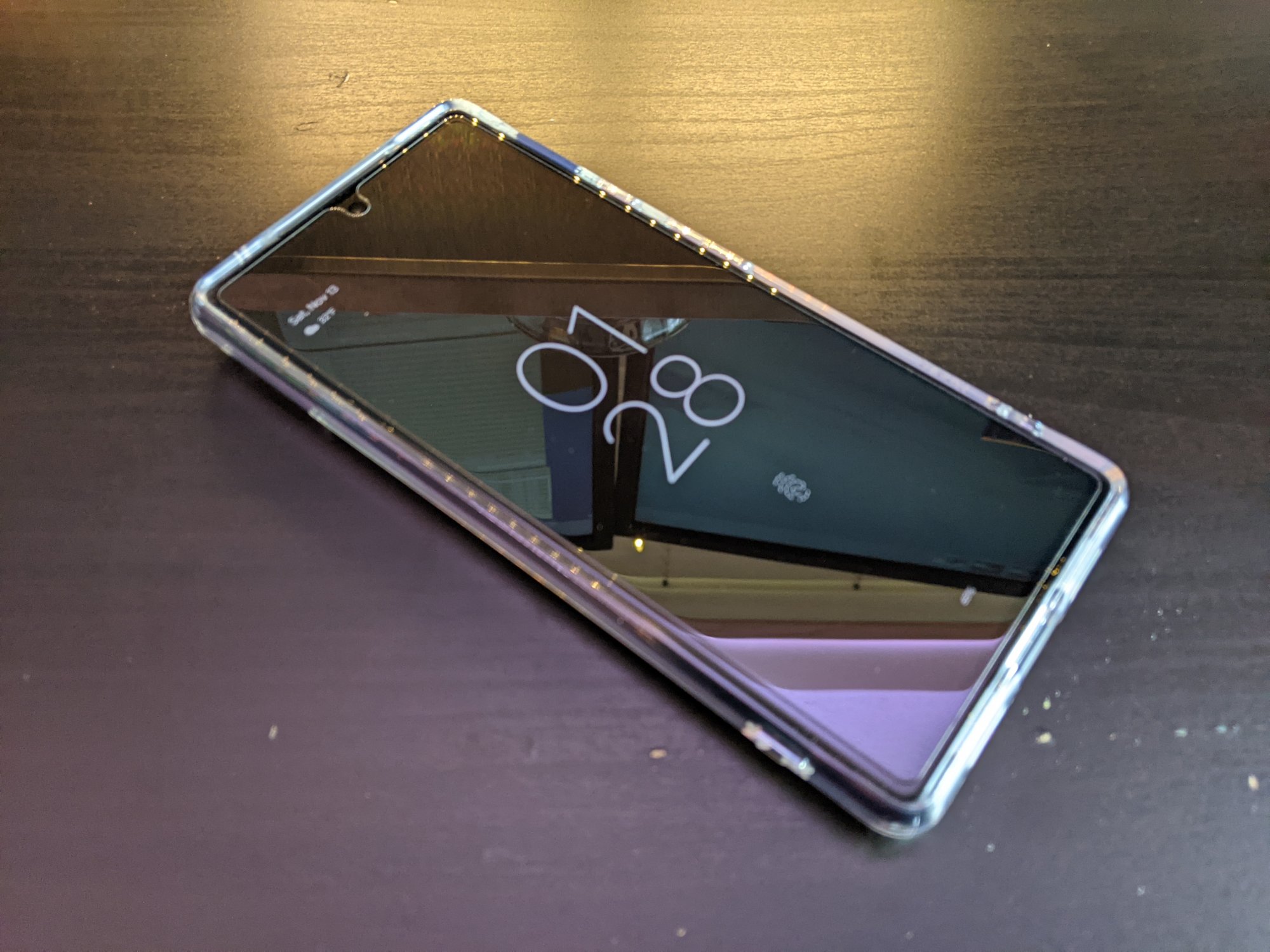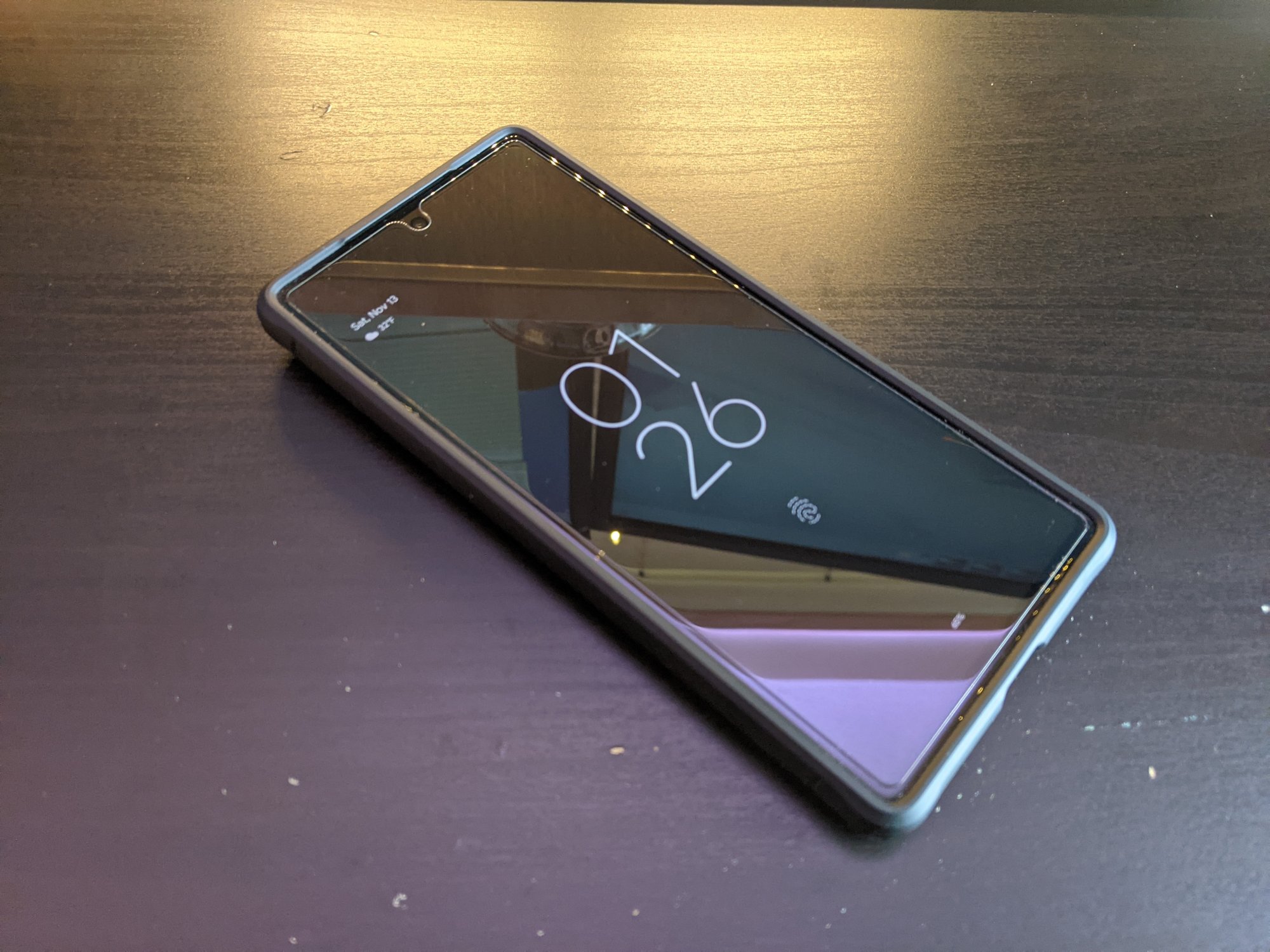 This is just the front view to show the weird dot where the fingerprint sensor sticker adheres to the display. Most of the time I don’t notice it but I haven’t yet tried to watch a movie or video with this case on.