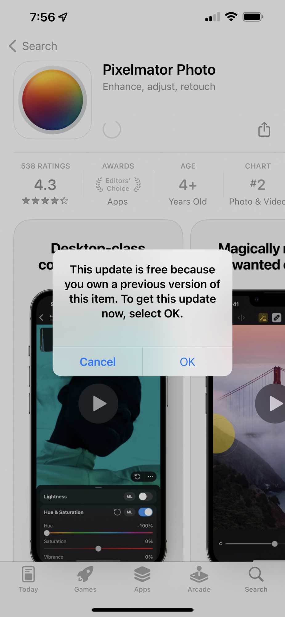 Unless you own pixelmator PHOTO, on the iPad, then you’re talking about a different app.Since I already own Pixelmator, I followed the advice given on this thread and tried to go through the buying process. No pop-up happened for me and I was charged $3.99. Oh well, I am sure it is good app, but be forewarned...it may not be a free upgrade as advertised above!