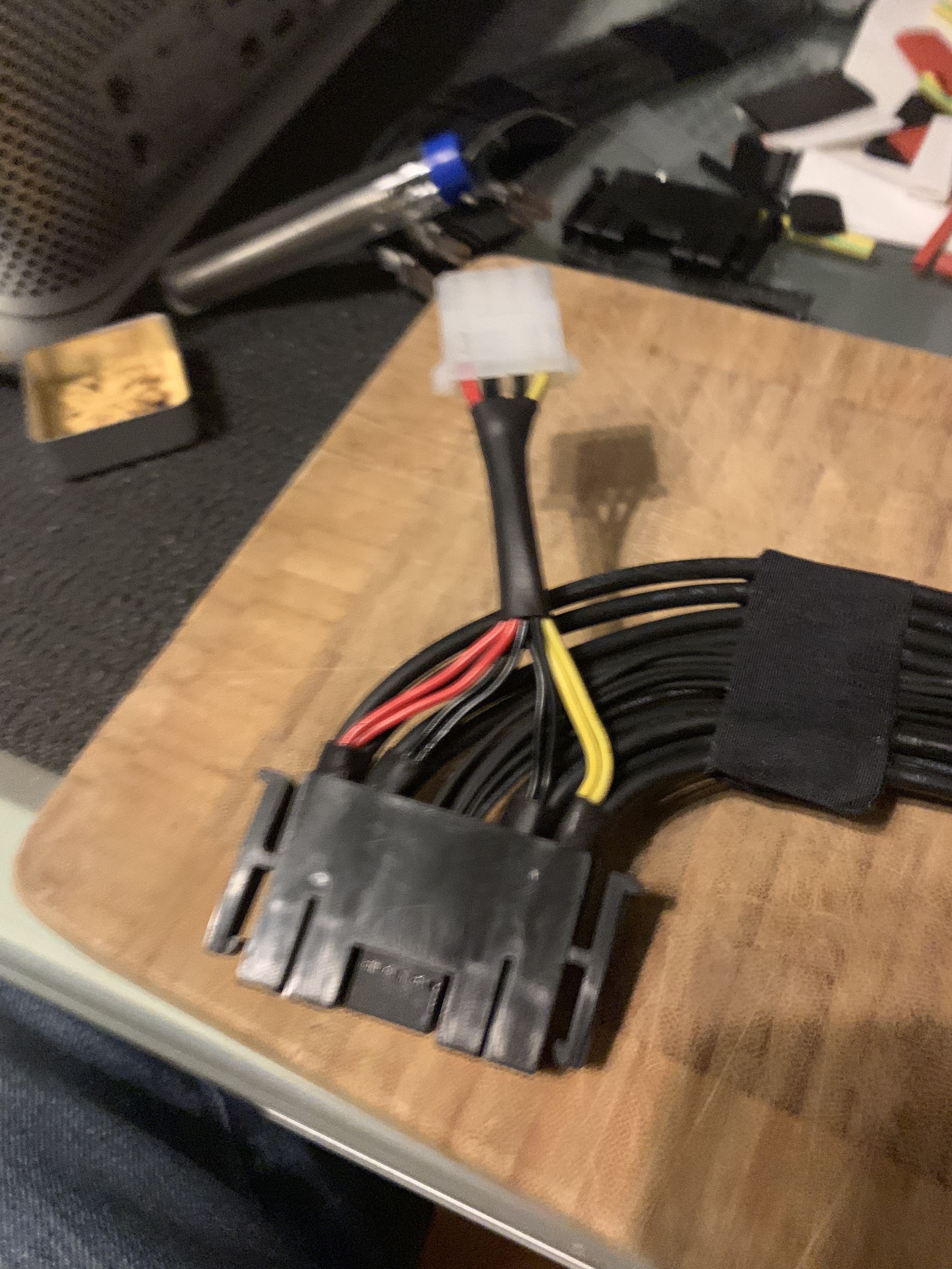 I did the house of Moth "T-tap" instead. Thanks for the guide - went like a charm, but I am stuck. All blades are seated, wires were prepped with a gap for the taps, multimeter shows 12.26v at each +, but the dual EVGA NVidia 1080ticards are still not being recognized by the system. This was my first time doing this mod, but I think I got it all. Machine boots up without issue, just doesn't see the cards as if there wasn't power at the 8-pin connector.What could I have missed?