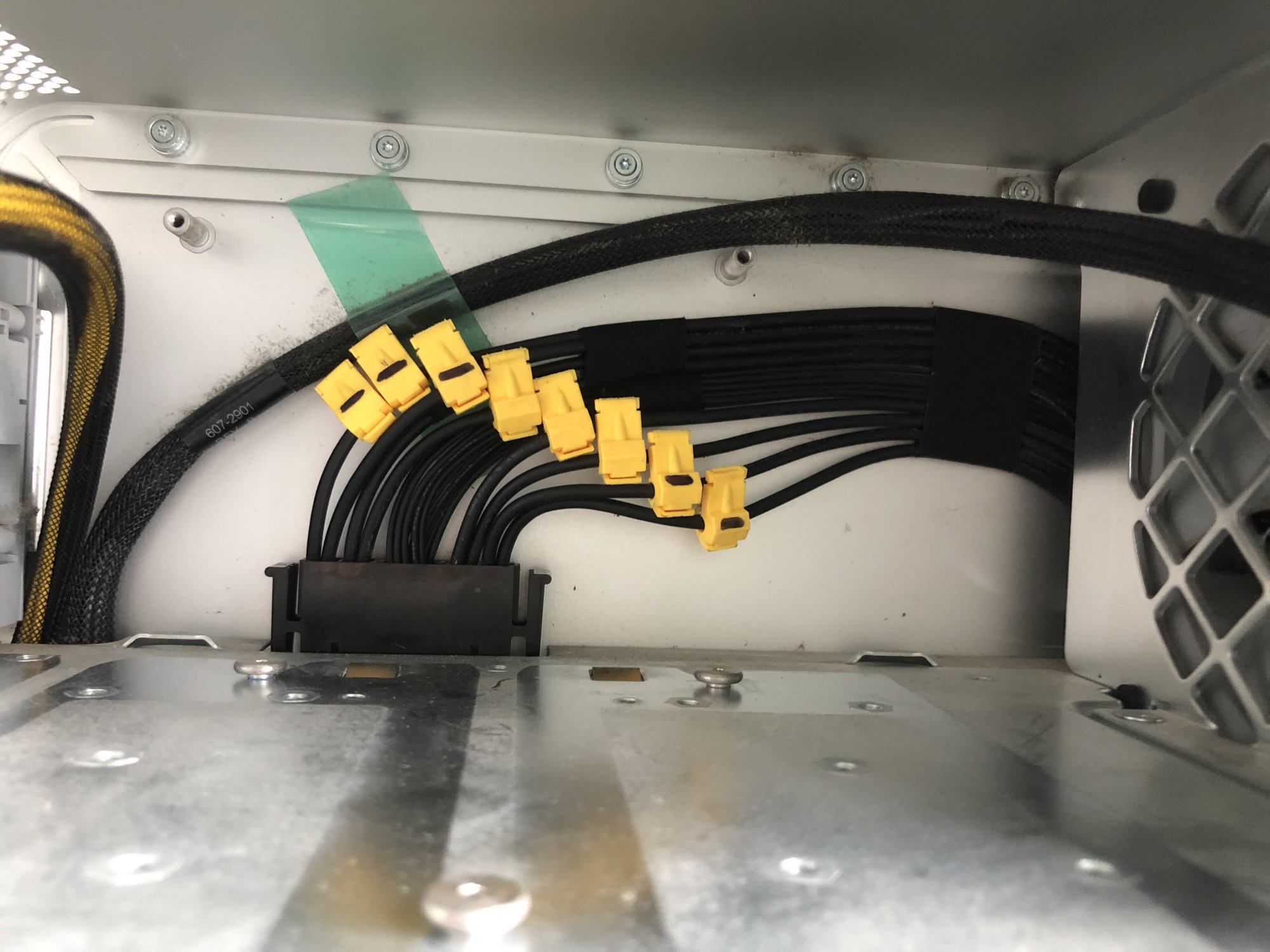 I have a question? considering the two back plane aux connections are rated 75W. Each cable has three 12v wire rated 25W each, is it possible to bridge the 3 12v and corresponding grounds and connect them to pins 1 & 5 in a six plus two way connector x2, then using the pixla method tap all four of the 12v and grounds to supply pin 2&3 and 6&7 to provide two six or eight way connections. The two aux connections will draw 50W, as do each of the four 12v pixla connections. Loop ground connection to pins 4&8 on each connector.