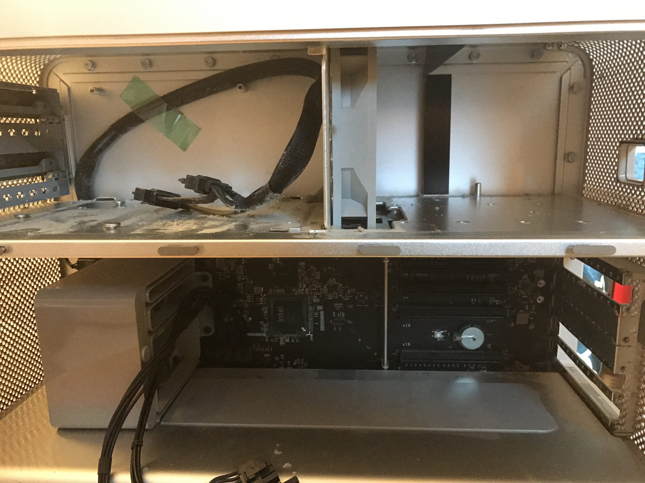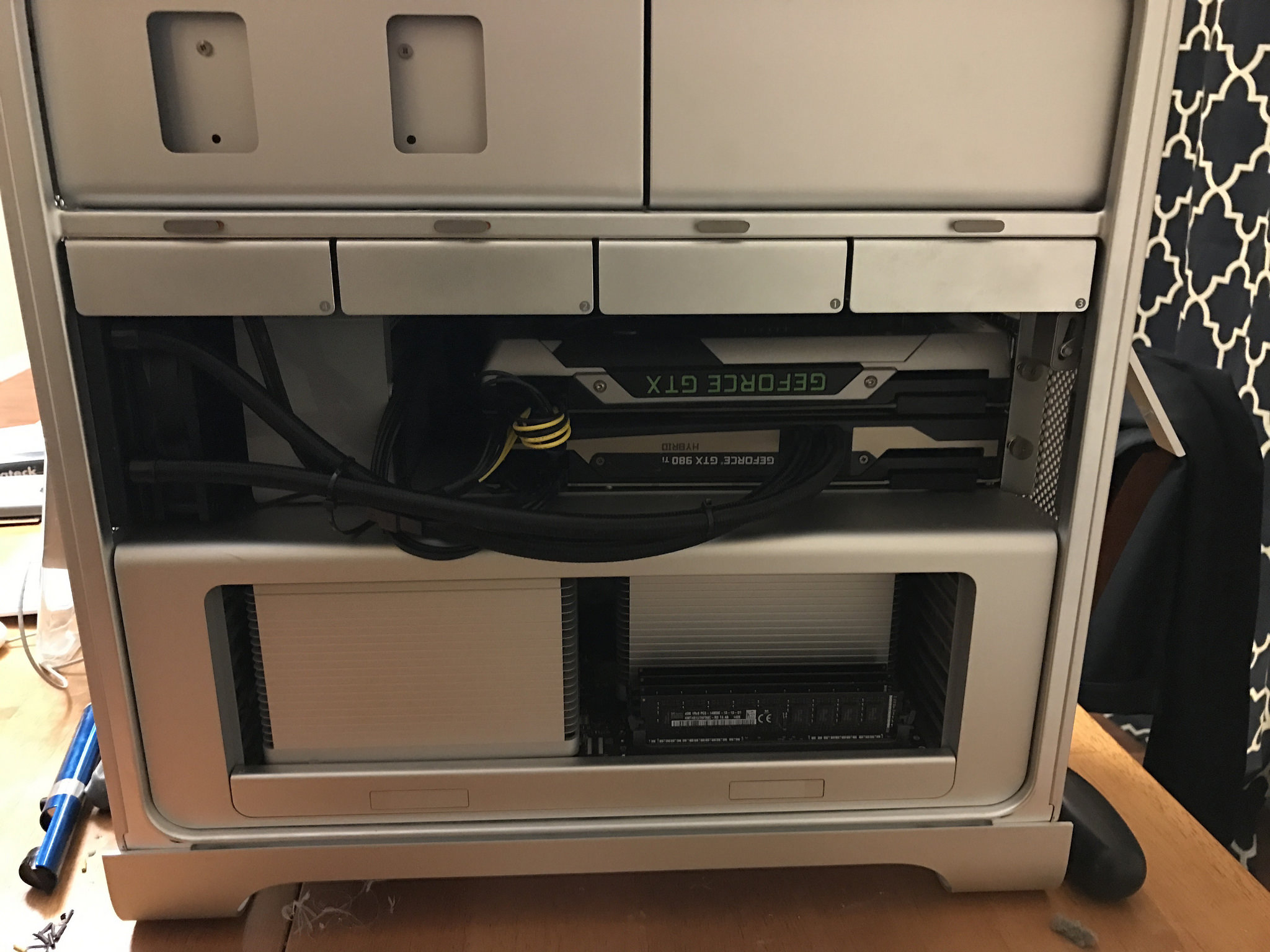 By lifting up the graphics cards in slot 2, you will shift its position towards the door so that the display contacts might not all be available on the back. This would not be a problem since it would be the "compute card" with no cables attached.