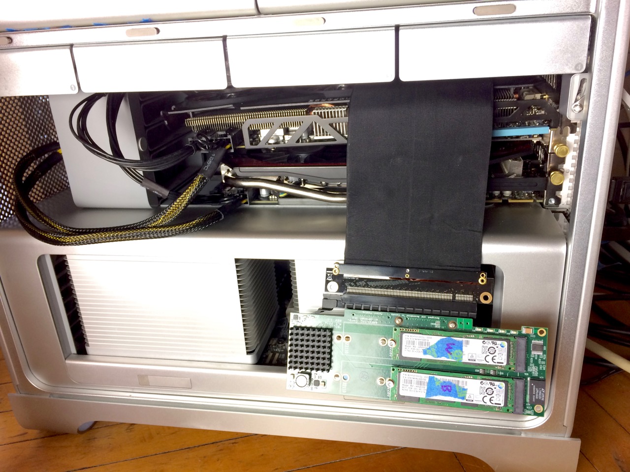 So... it does work, even if it's a little ugly and definitely fragile. But I'm very happy having two GPUs plus USB 3.0 and PCIe SSDs.
