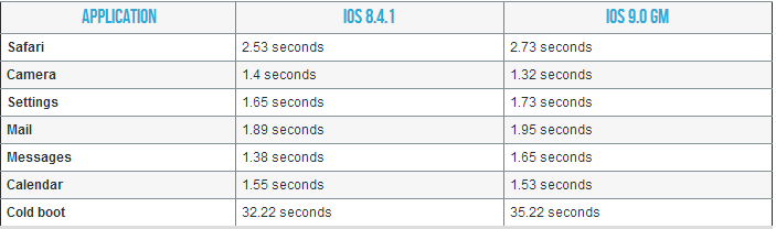 And while you link those sunspider tests,I have benchmarks proving iOS 9 degraded launch times for several apps.Videos show that iOS 9 almost always is slower than 8.4.1.Now lets look at Apple's claims