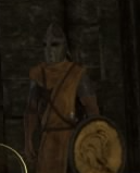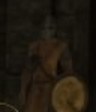 This is grabbed from nearly identical screenshots of a guard in Skyrim in the far background. The images were resized to represent what you actually see in game.
