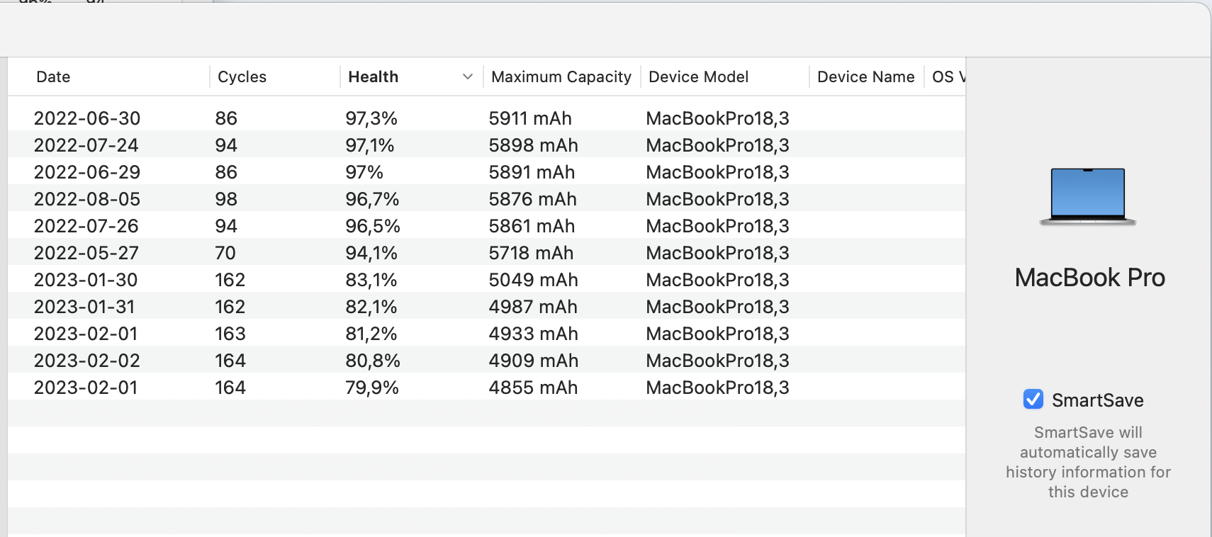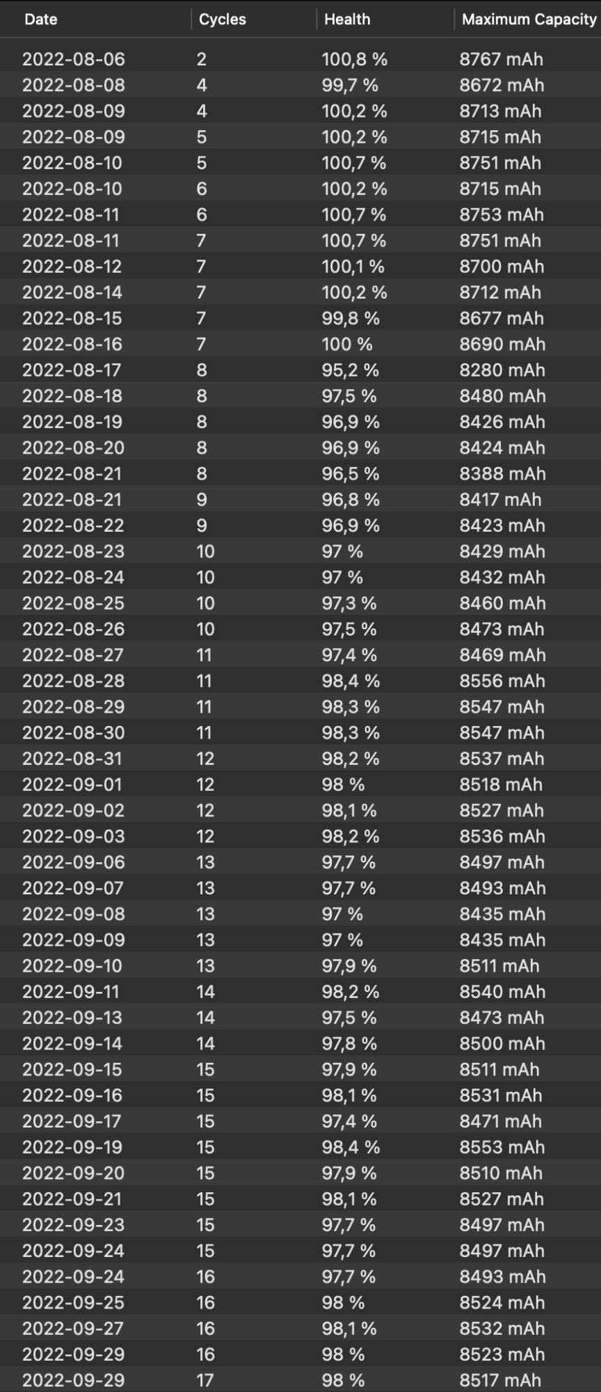 Feel free to ask me any questions as I have been fighting with this issue ever since late Summer 2022 as you can see from Coconut Battery history.