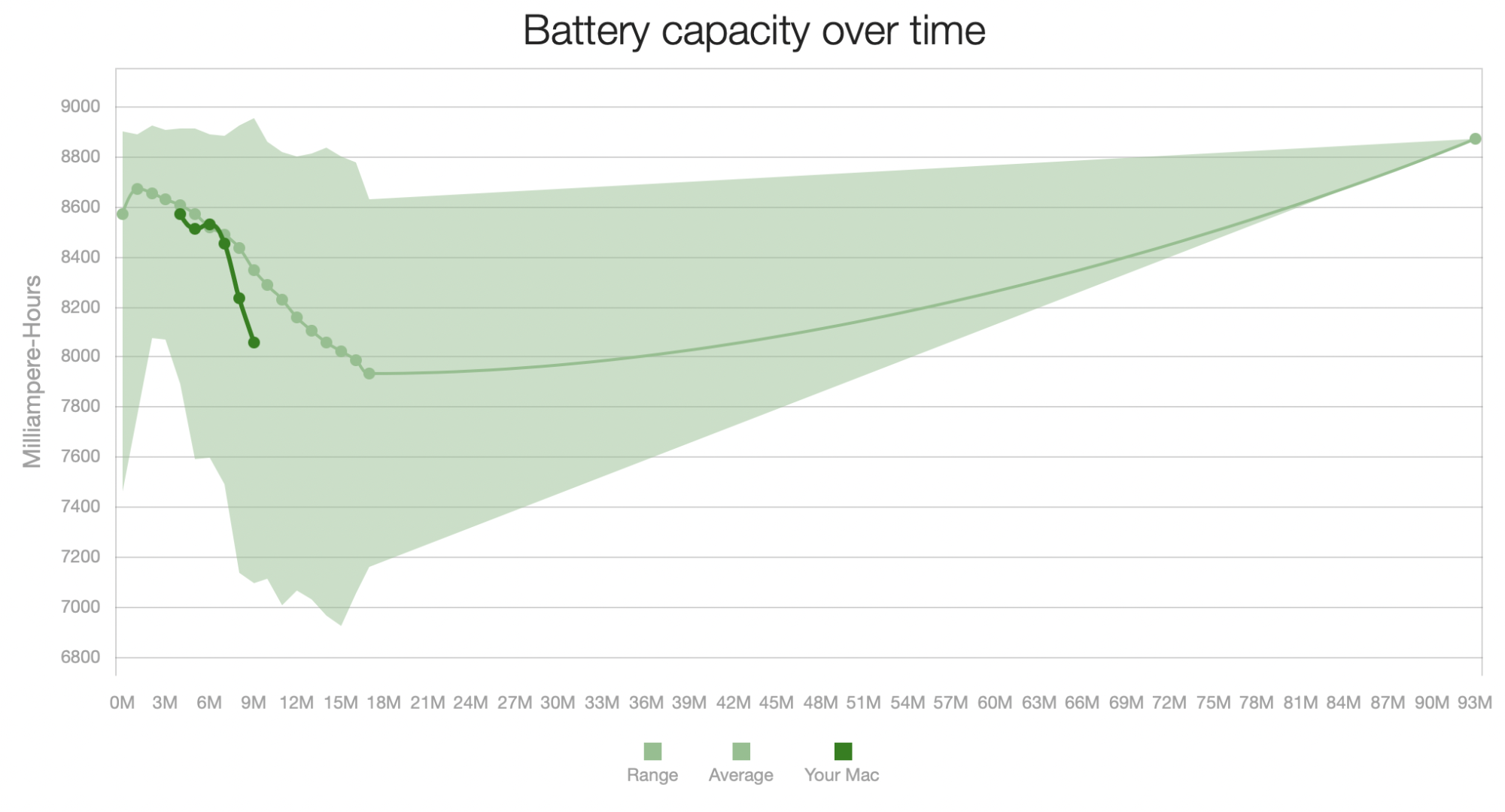So what is your workflow with Aldente Pro on new M2 Max 16?The chart is from battery university. Yes, I use aldente. My old M1 Pro 16" was at 119 Cycle count, 84% after 13 months because I kept it plugged in most the time at 100%. But now I have the new m2 max 16" and I'm using aldente right from the start where as I only used it for the last couple of months on my old Mac.