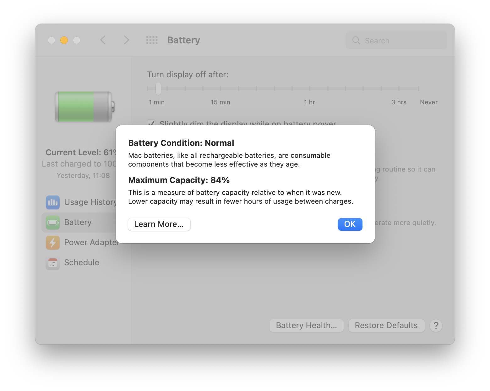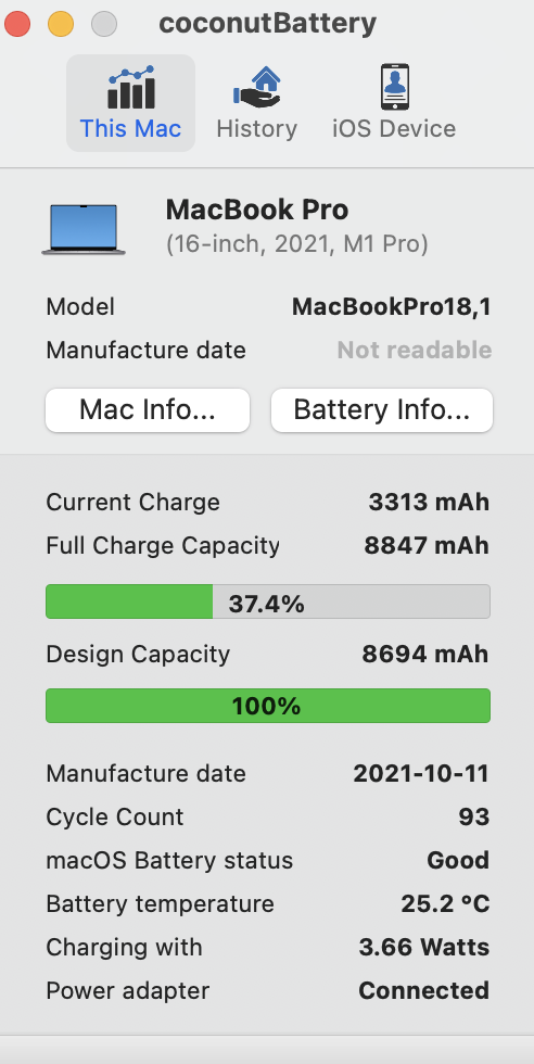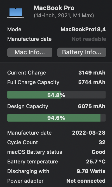 First Use was on February 2nd, 2022... I think that running a windows virtual machine really kills your battery capacity and I turned off Optimized Battery Charge for a solid 2 months due to the faltering of my own RAM in my brain lol.