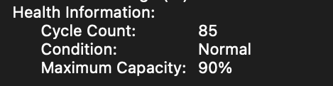 I bought the MacBook Pro 16-inch M1 Pro back in December , all these months I use it about 8 hours daily. Is it strange that the cycles are 84 and battery health 90% ? I haven't activated optimised battery charging...