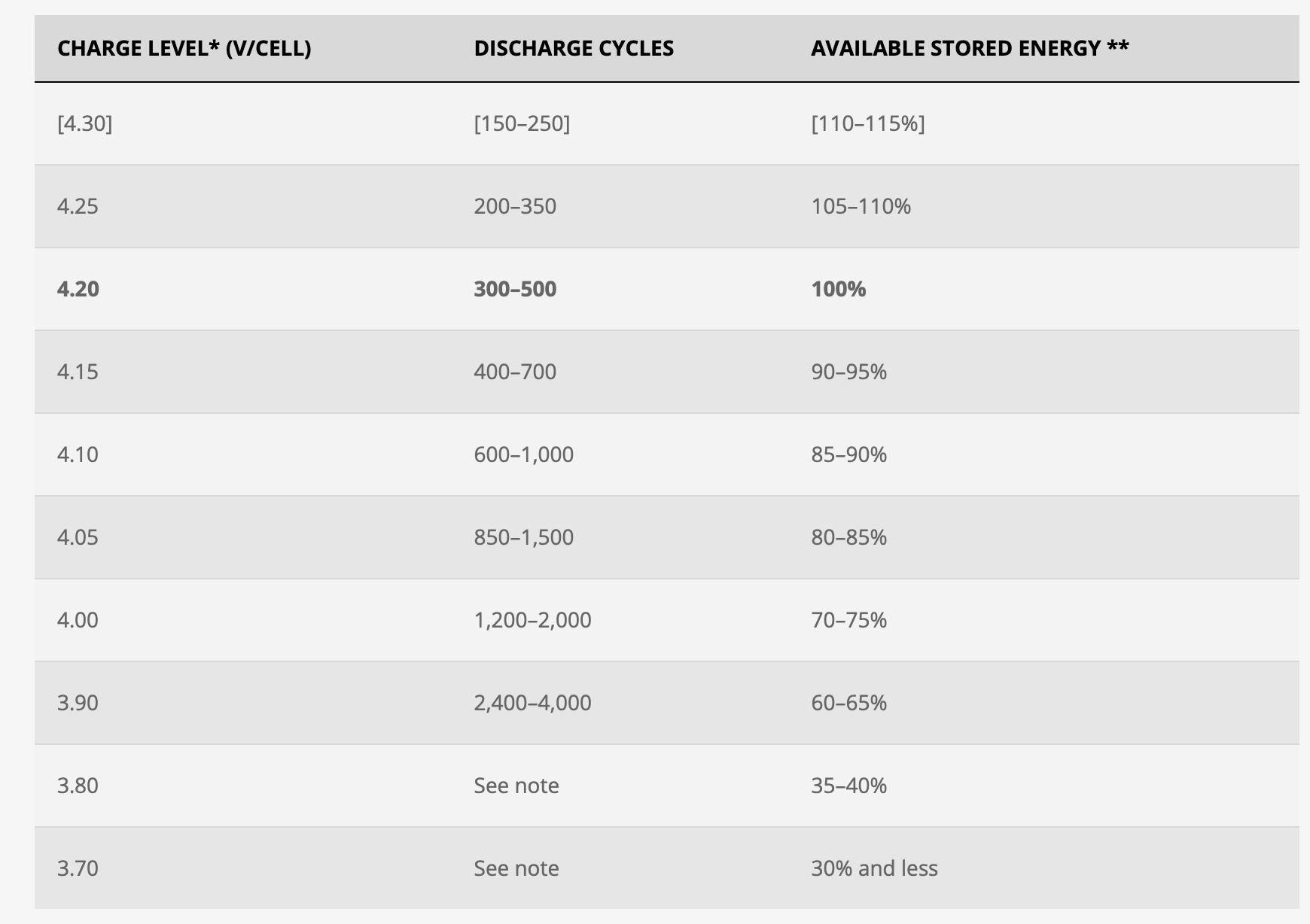 Most manufacturers will state that storing a Lithium Ion battery at around 40% can significantly increase the longevity of a battery if it is not being used versus leaving it at 100% charge. But specifically in reference to the above article, however, (see below)