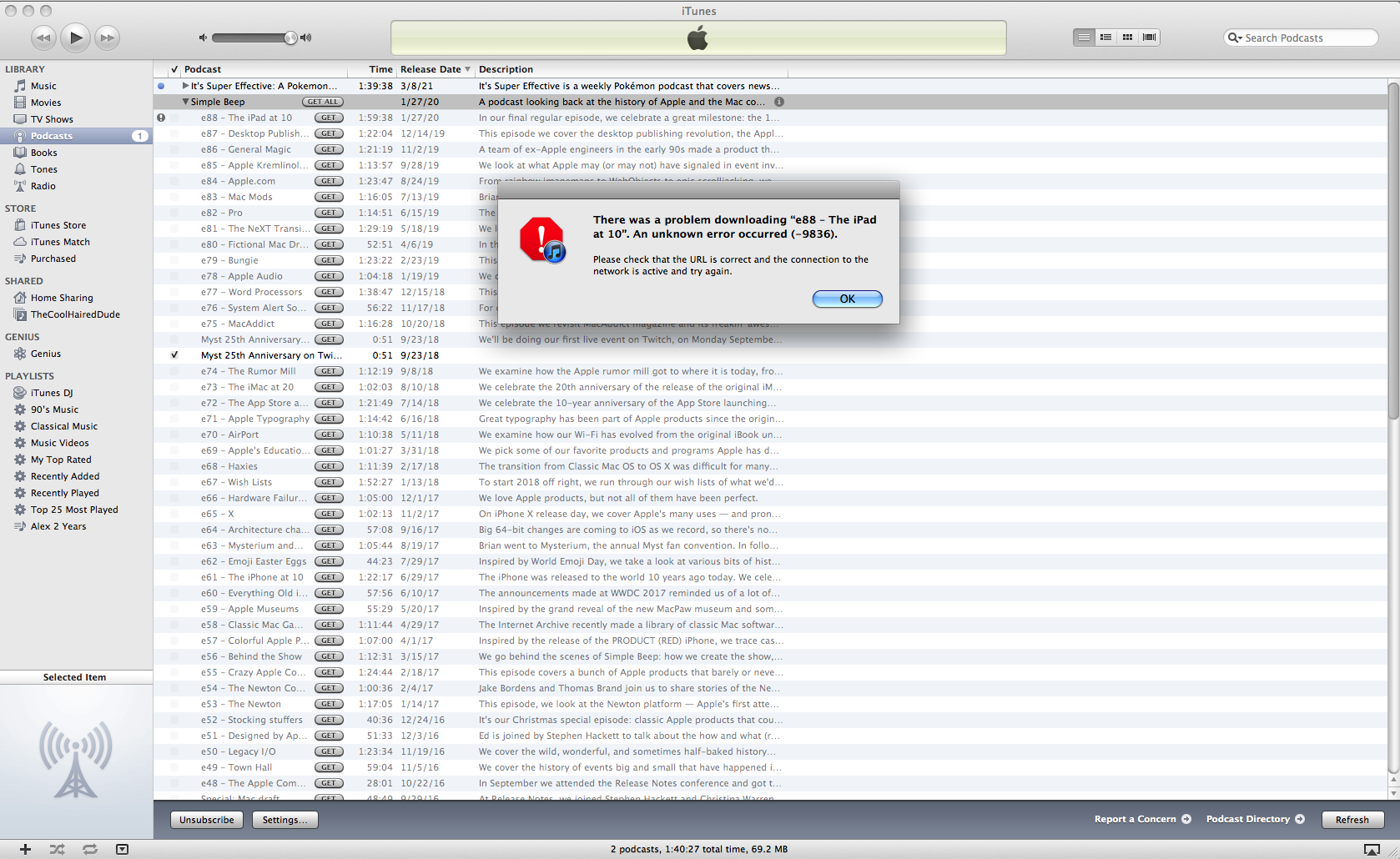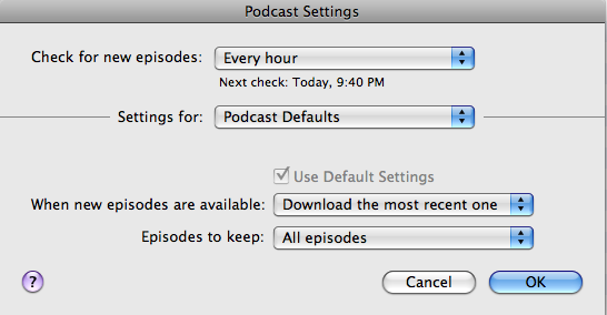 Kind of a shot in the dark here. I've got an iMac G4 running Tiger; iTunes 9 is the latest version it supports. Everything works fine to sync to older FireWire iPods but the 'podcasts' tab doesn't work. I can't subscribe to or download podcasts.