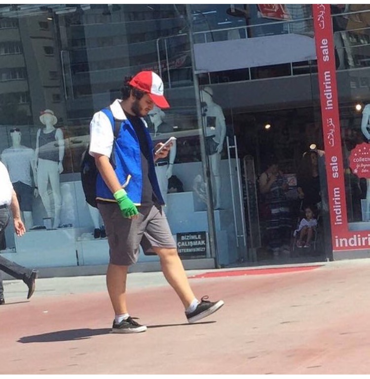 Pokemon shirts--check. Sanrio backpack--check, though that has been passed along to my kid. Weird hair--I even have the same hair color and style as the blonde female avatar in the Pokemon Go game. All I need is the freaking hat and the weird clothes and I'm set. I'm part Asian, a fraction of which is Japanese going back a couple of generations, so I figure looking like this is my birthright.I wouldn't be caught dead walking around with this, and I consider myself geeky and a little bit nerdy. This is something I'd expect from the dyed hair-Pokemon shirt-Sanrio backpack-knee high stockings type that walks around with an Nintendo DS and Manga.
