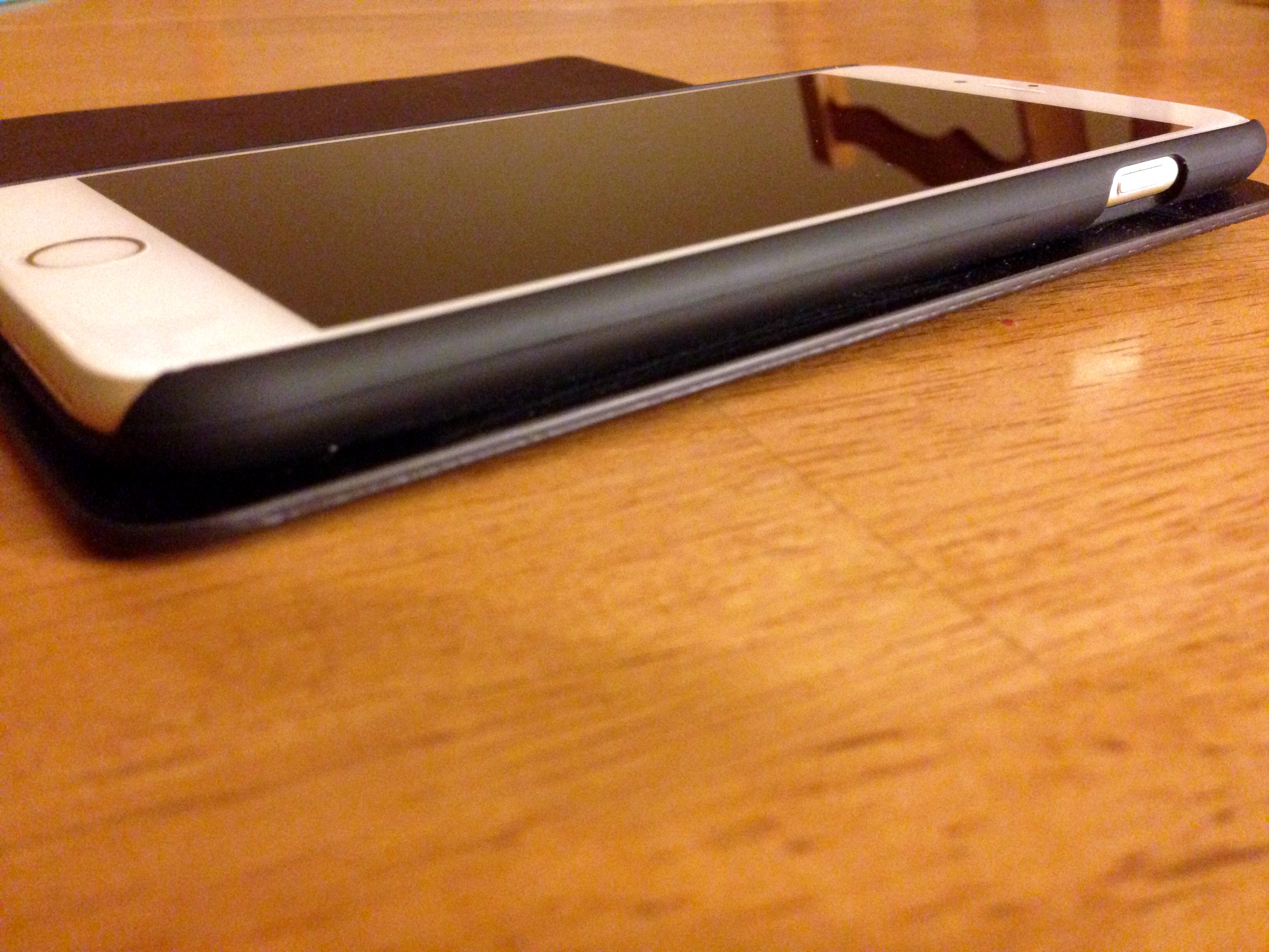 The leather is pretty thin, actually much thinner than I thought it would be, which is why the case is not that bulky. Again, it probably means there is minimal protection and the case won't protect against bad falls onto concrete, but the style more than makes up for it (I say that now - hopefully I won't regret saying that. Just have to be careful with it). I am in love with the case. It feels really nice in my hands. I actually find that it's easier to use the iPhone 6 Plus with one hand with this case on. Because the front cover folds around to the back of the phone, it gives my hand something else to hold onto while I reach across that gigantic screen. I'm much less worried about dropping the phone. It provides for a better grip, which I am thankful for.