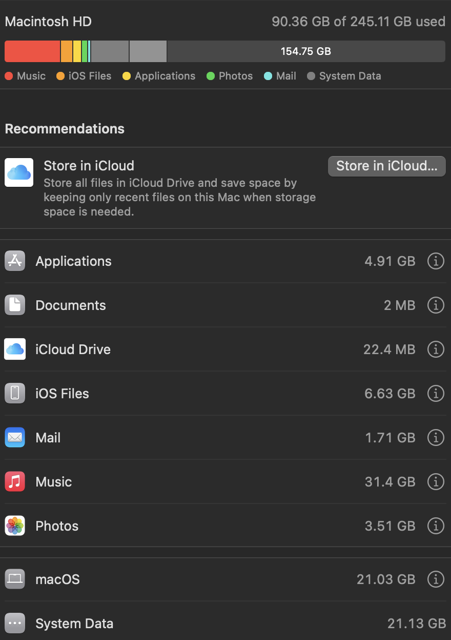 Then I looked at the storage amount- 90GB. Which is pretty much what it was before all this started. And oh look- system calculating totaled and stopped.