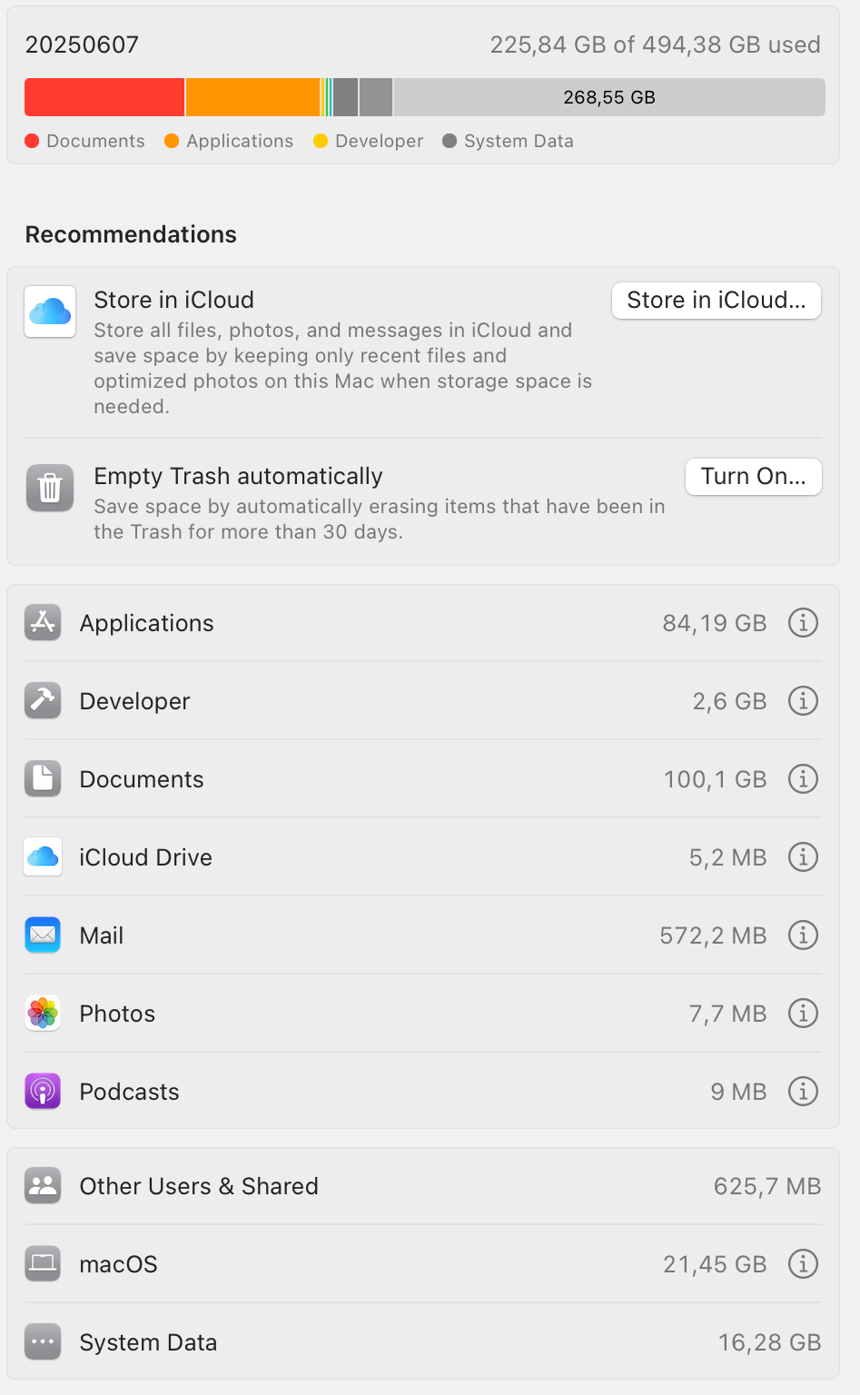 So I turned OFF Apple Intelligence- and guess what. Yep. Storage had dropped back to 25GB or so, (I have 31GB of music alone) and system data was back to endless calculation.