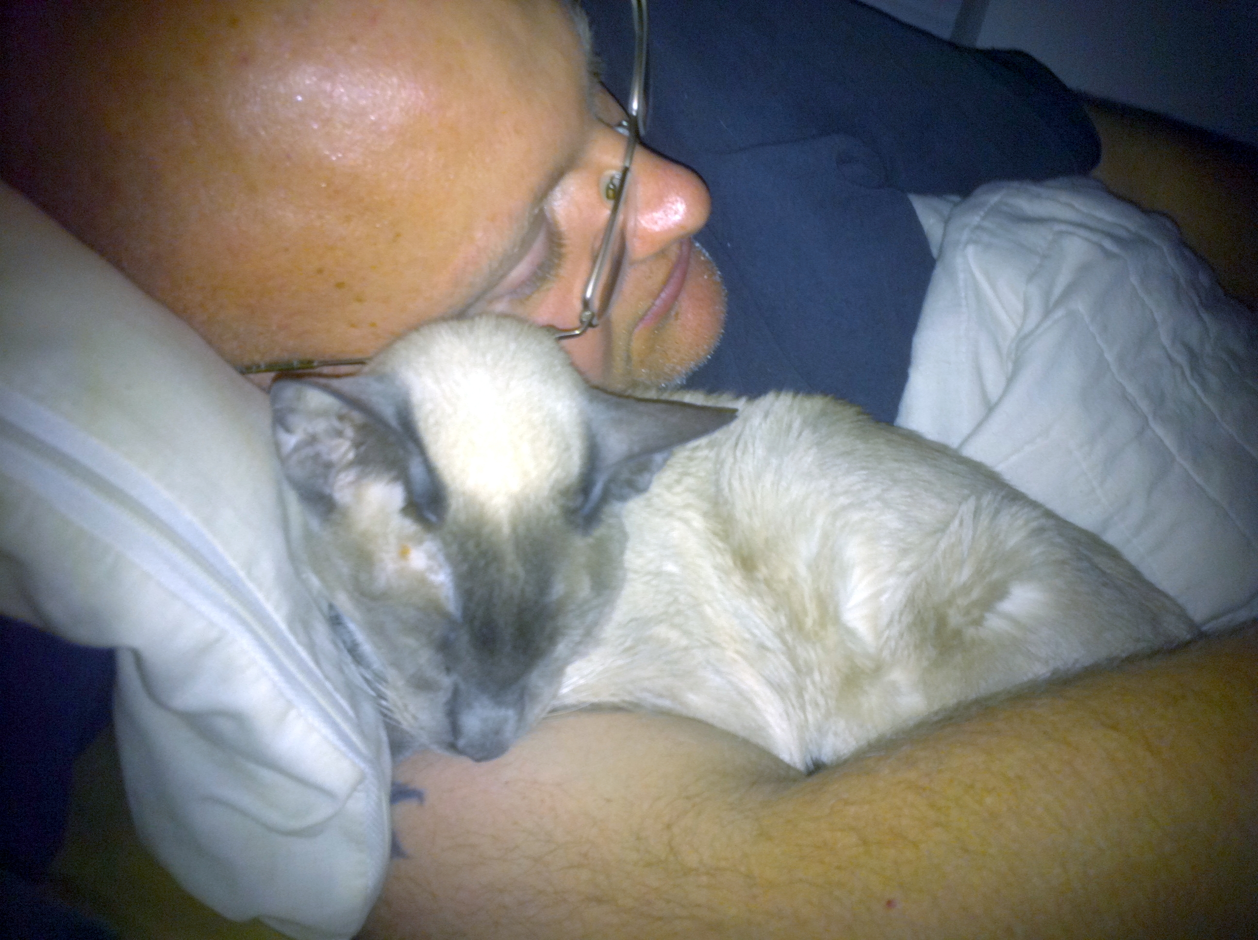 I found another picture of my Siamese. Her name was Peanut. She is no longer with us, but she was the sweetest animal I've ever had, cat or dog. She loved everyone, but especially loved to do this: