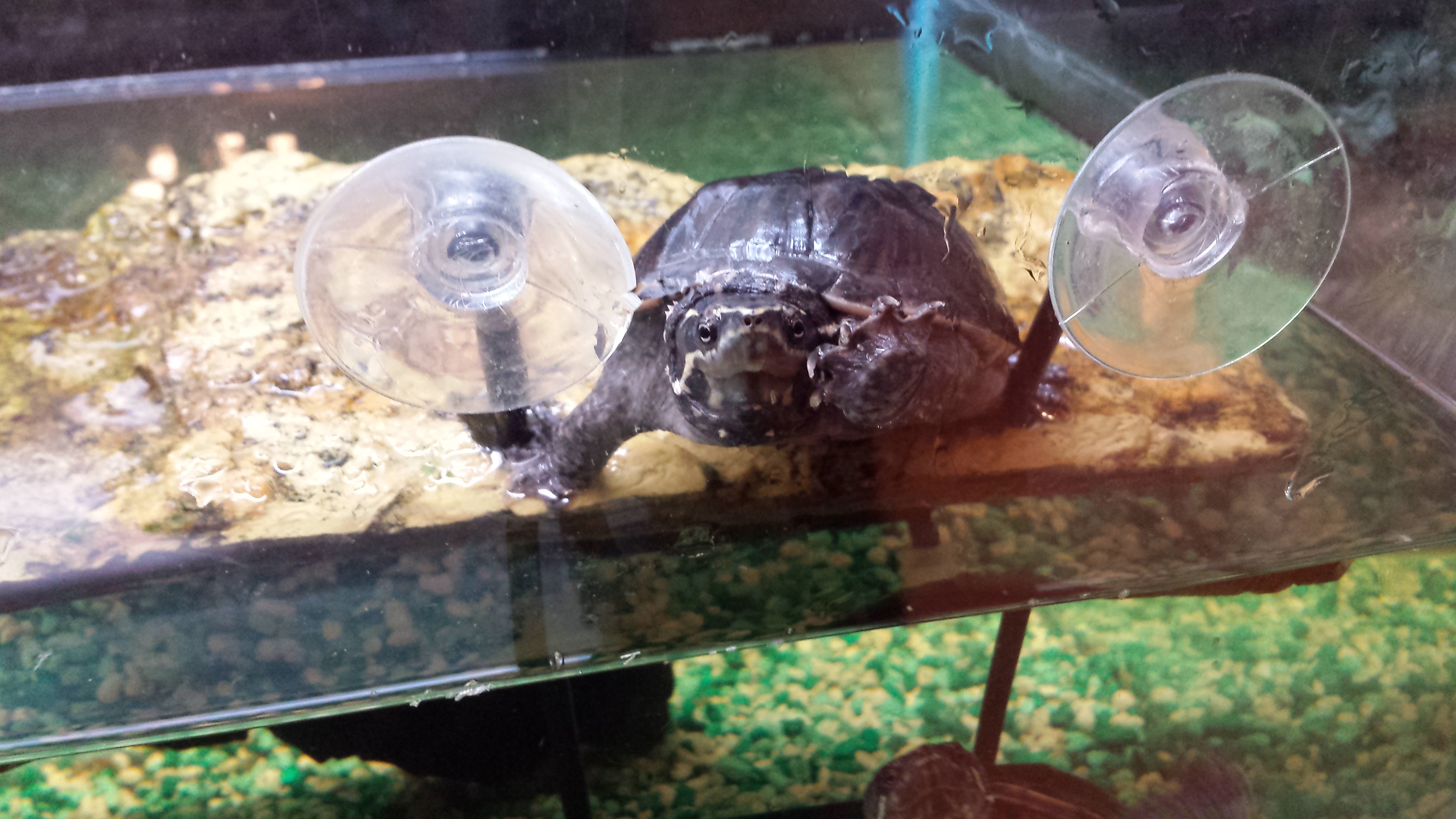 My year old musk turtle. There's another one hiding under a log somewhere. We originally brought 4 for each of the ninja turtles but two didn't live longer than a couple of months :-(
