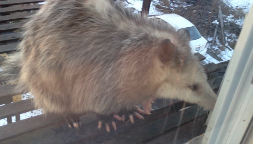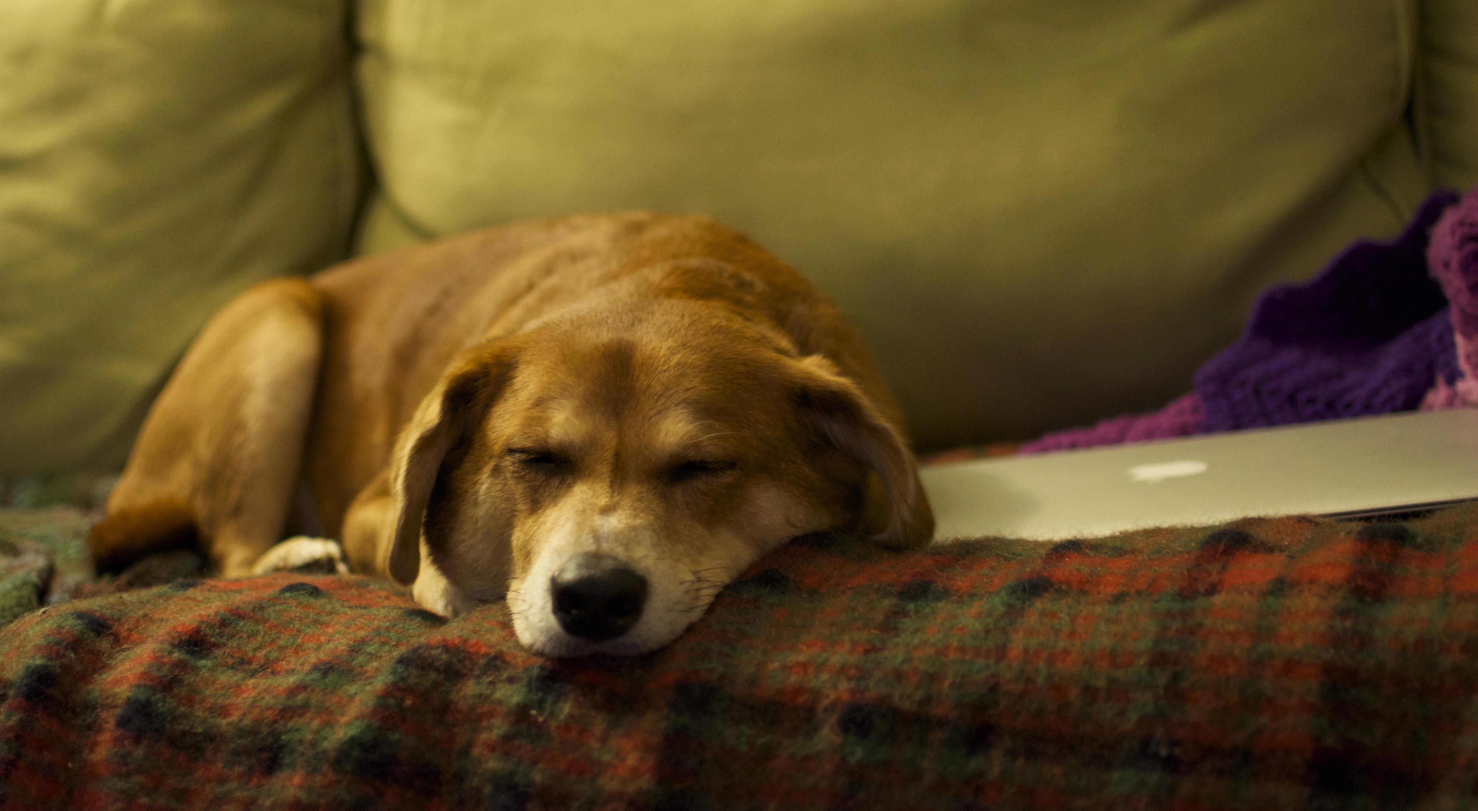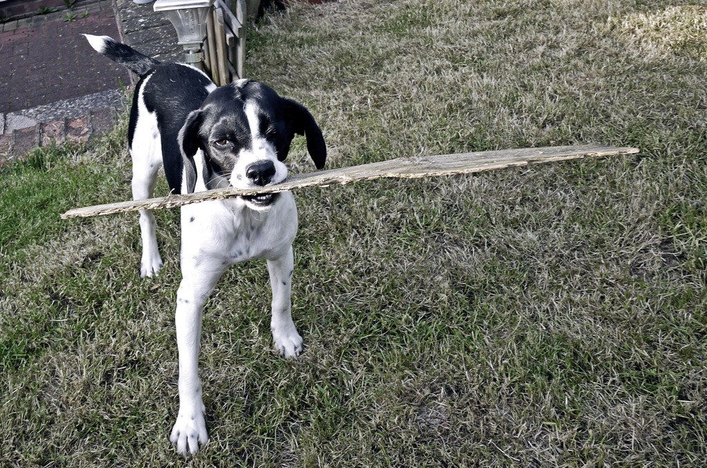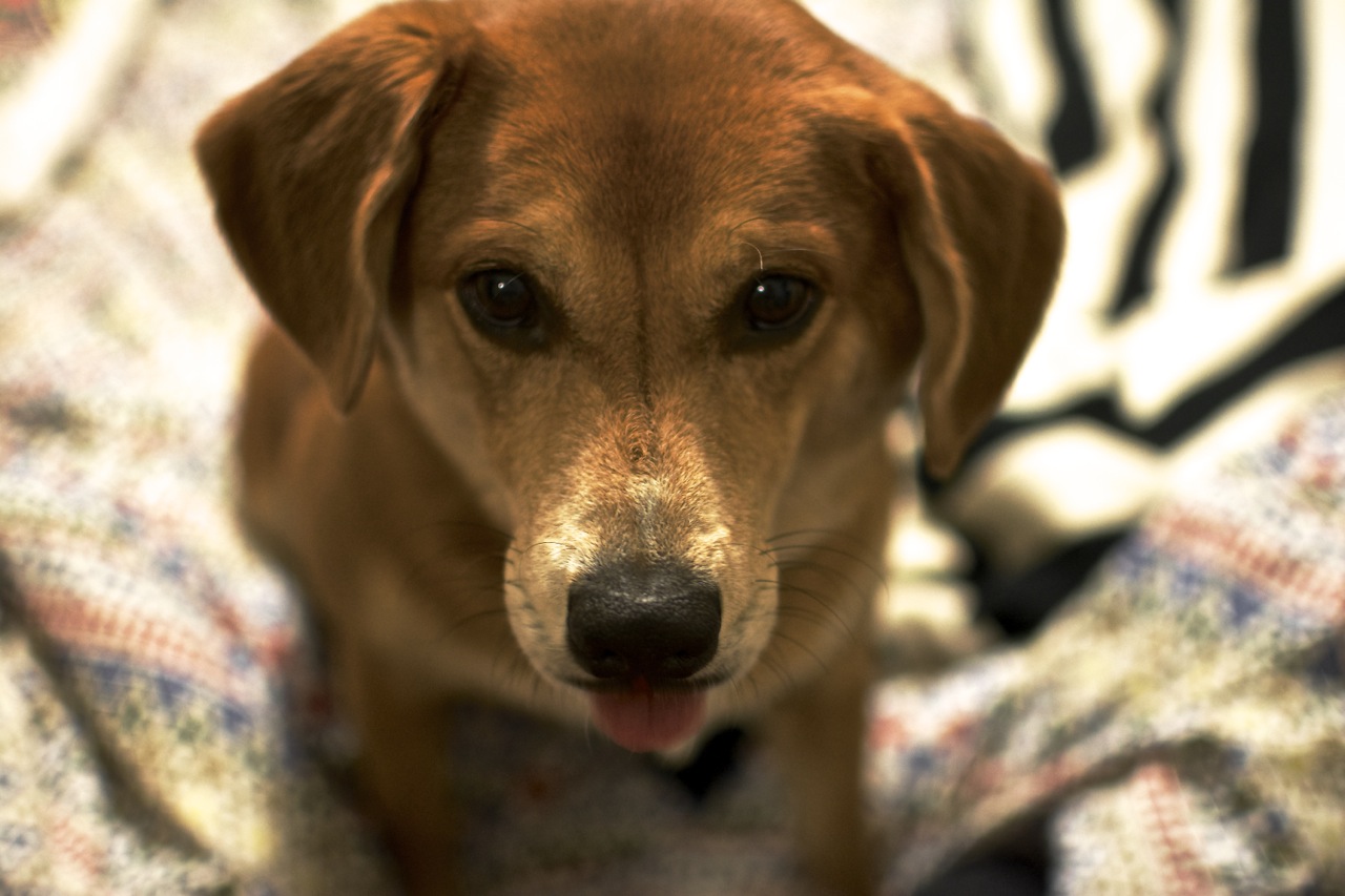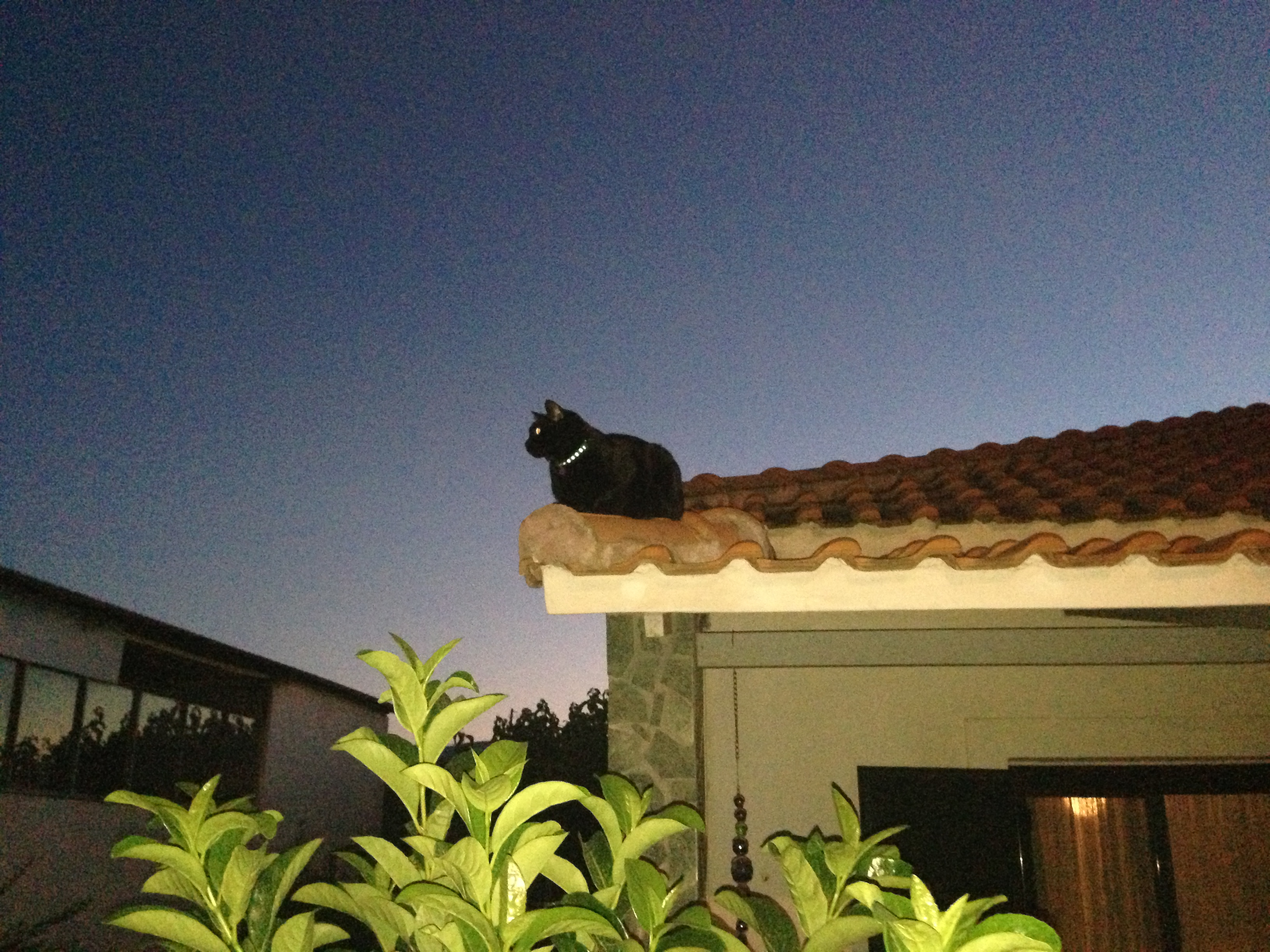 Licking his lips as he'd just jumped shoulder height to steal a bite of my wife's hog roast sandwich.