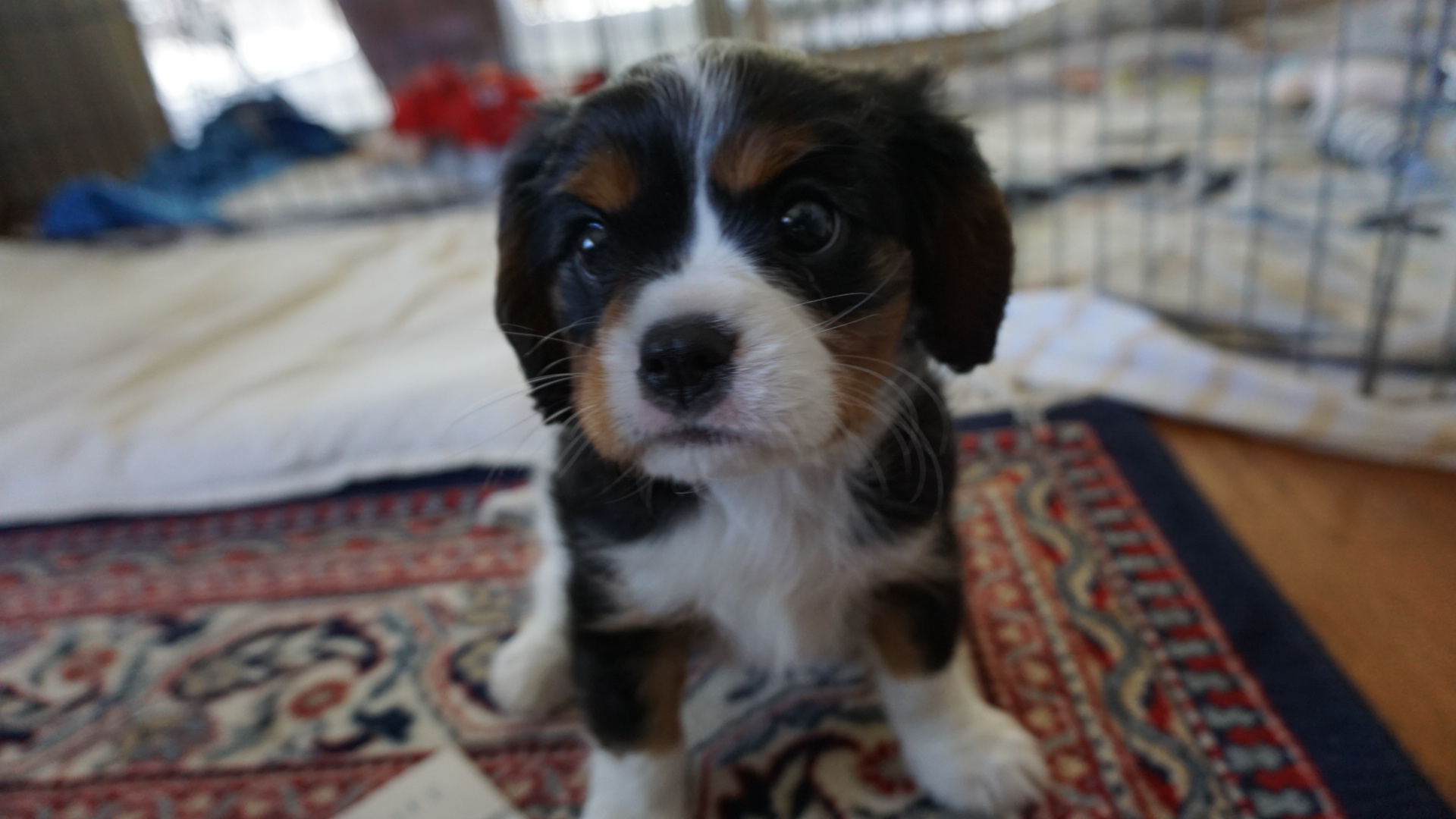 ...staring at me. An explosion of white hair. Perfectly round eyes. Goofiest looking animal I've ever seen. Looks like Cap-Cat, but FUR! Apparently Mom-Cat had another baby.