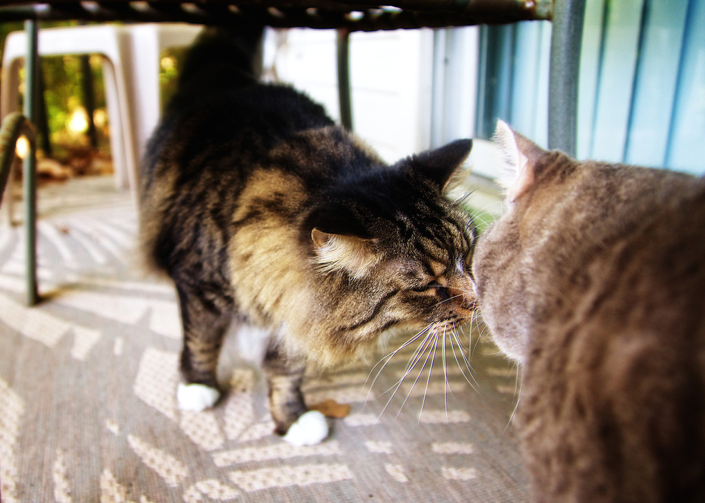 Sophie sniffing Duncan.