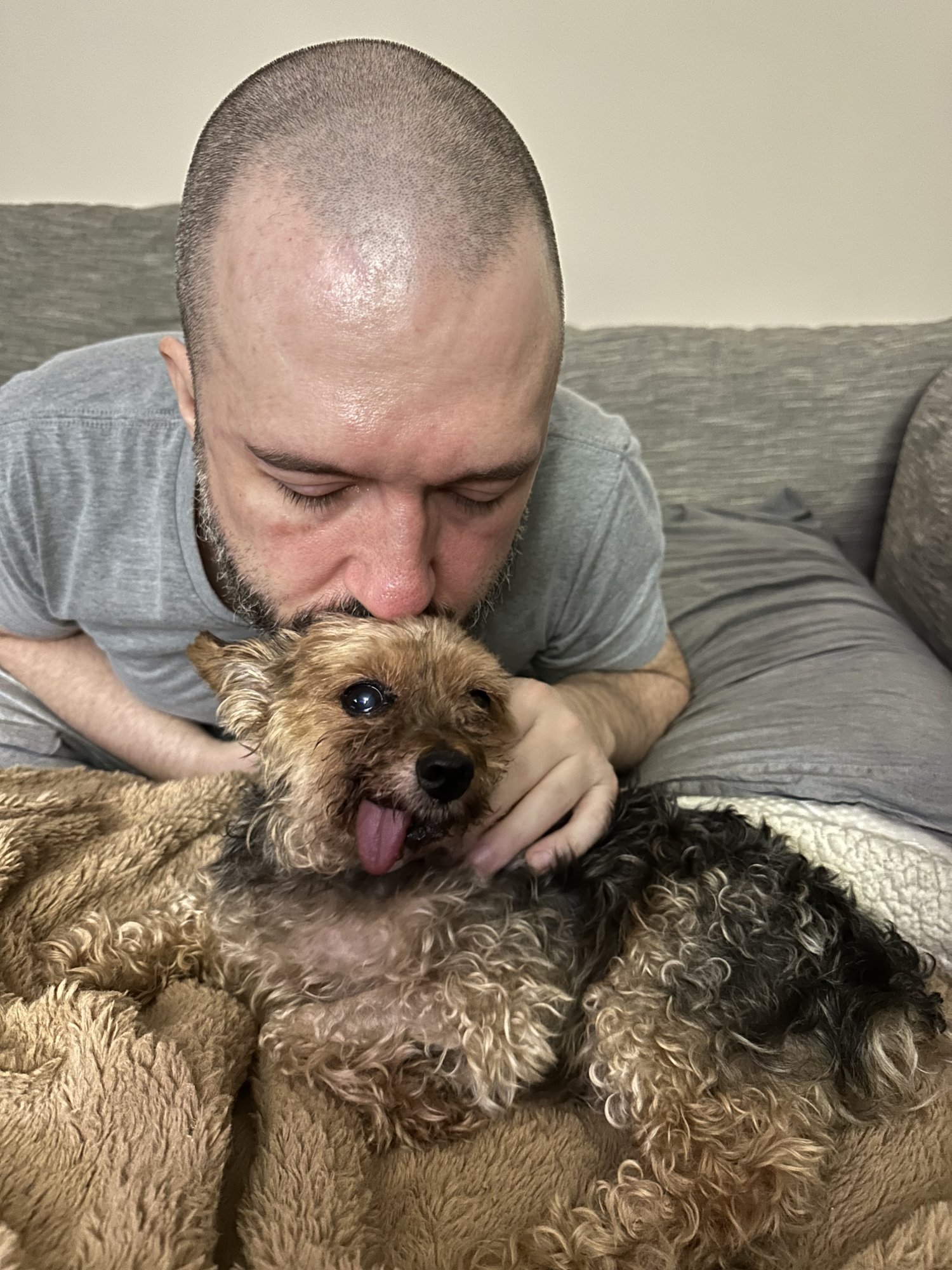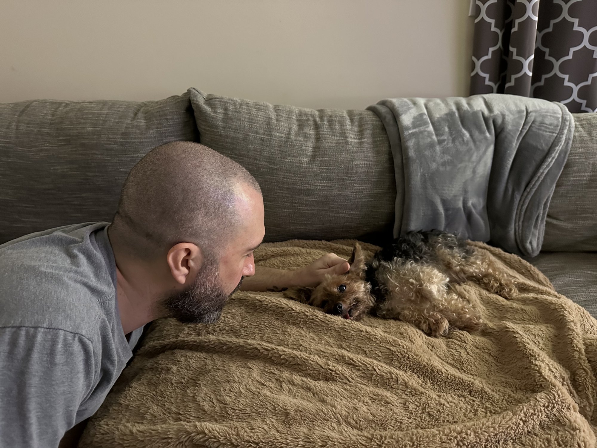 Well, we were wrong about him hurting his back. It was congestive heart failure causing him to black out. We went to pick him up from the emergency vet to take him to his normal vet and he collapsed when they walked him out to us. They were able to keep him going and give us another day with him. We took him home yesterday and had the best day with him. By then he was so weak he couldn’t even walk but we stayed on the couch with him all evening, slept on the couch with him and spent all morning with him. He had one of our hands on him (if not both of us) at all times the last 16 hours or so or his life. He was loved and he knew it. We’ll miss little Sir Macintosh Mcbuppinstuff more than he could ever imagine.