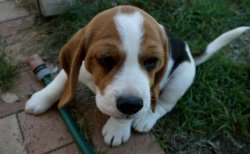 My dogs, the little one is Max. He's a beagle and he's 9 weeks old. The big one is Brodie. He's a boxer and he's 9 years old.