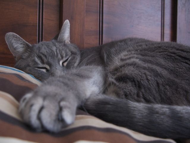 Here is the stray that follows me around (he came by one day and didn't leave - over the years he's gotten easier with us and now we can pick him up. he had been abused by the people who dumped him). He's not my cat, per se, but thinks I'm his person..