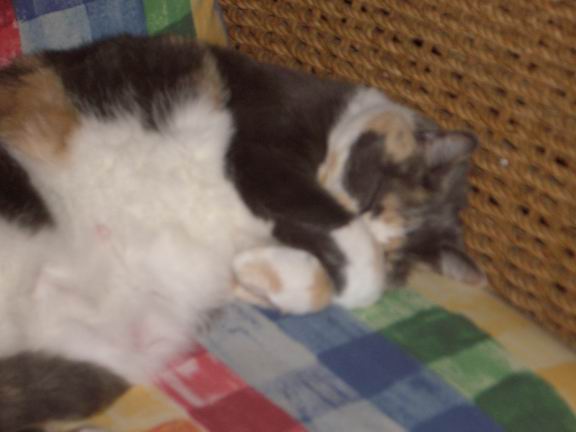 Shiva (look above) is also an adoptee. Got him from the local RSPCA equivalent a year ago, when he was about 12 weeks old. He was then a skinny little runaway. Now he's a ~7kg (over 15 pounds) happy (though on a diet ;)) and well adjusted cat (but with a funny voice and mannerism)... ;)