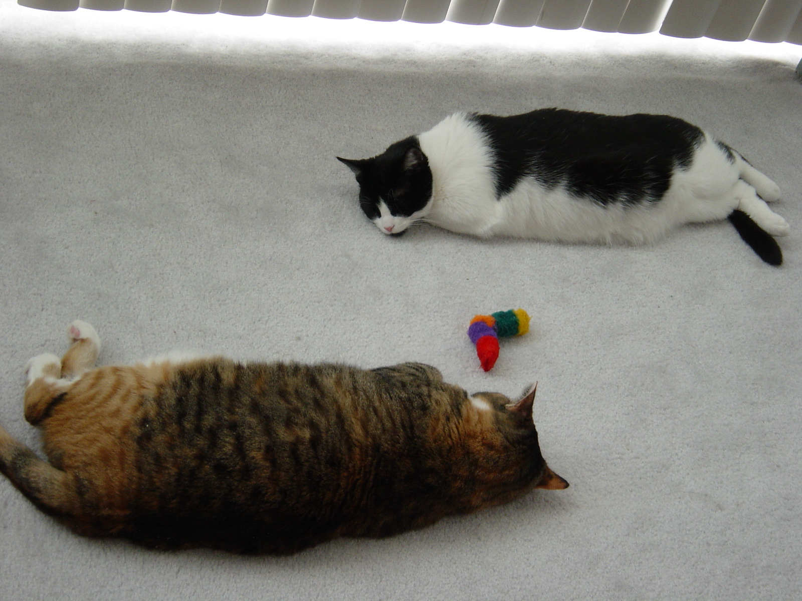 Its the one on the right, the real owners of my bed :S after messing up some receipts and a couple of days after getting a hair cut i think, they like to play outside and with mud too much, so sometimes it's easier to have the hair cut than untangle it all, don't worry it's usually 70-80F almost all year round :).